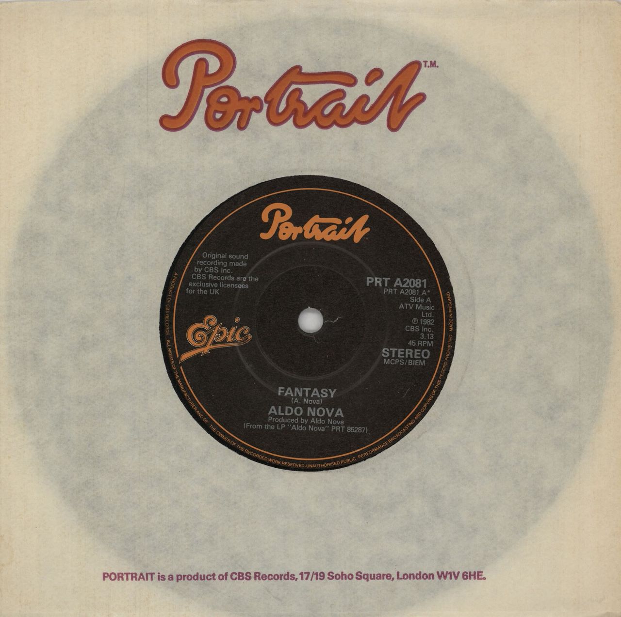 ALDO NOVA Fantasy (1982 UK 7" solid centre vinyl single, includes Under The Gun, Portrait company die-cut sleeve PRTA2081)