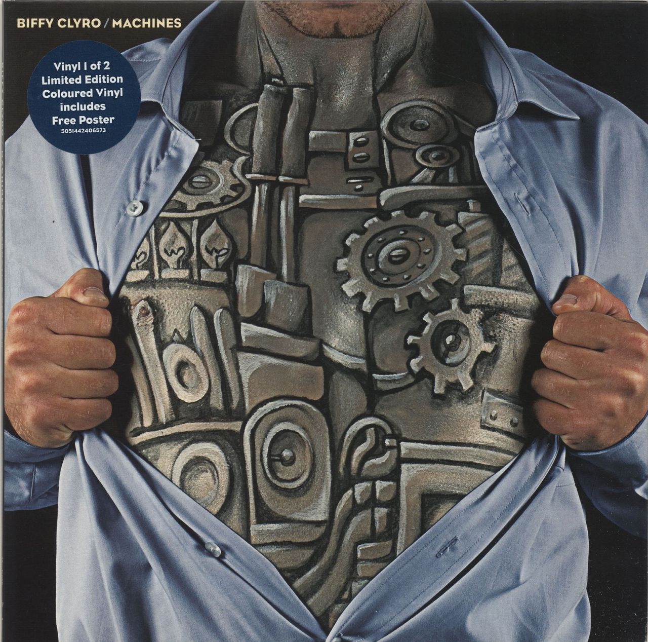 BIFFY CLYRO Machines (2007 UK limited edition 2-track 7" single pressed on Light Blue Vinyl, featuring the Alternative Version and the beautiful remix by Iain Cook [Aereogramme], housed in a numberedgatefold picture sleeve with artwork by Storm Thorgerson [Pink Floyd, Led Zeppelin] complete with a Bonus Poster!)