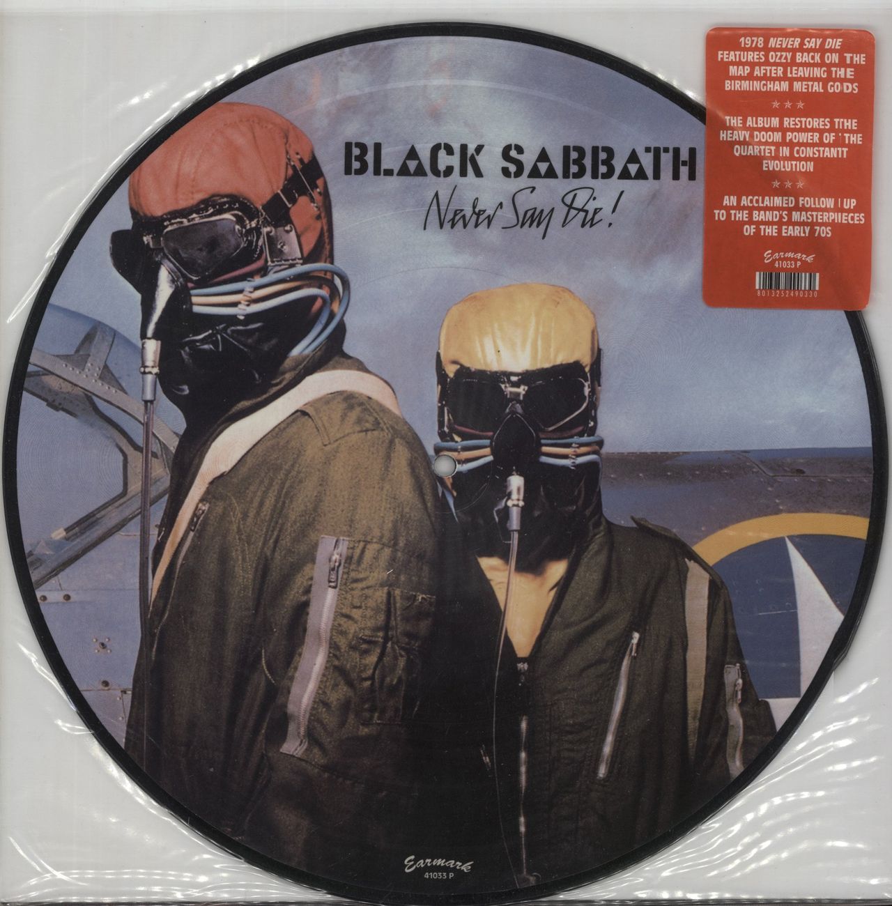 BLACK SABBATH Never Say Die (2004 Italian pressed UK issue limited edition 9-track vinyl PICTURE DISC, originally released in 1978 featuring Ozzy back on the map, restoring the heavy doom power of the quartet, housed in a hype stickeredPVC sleeve. The sleeve shows minimal wear and the disc shows very little signs of play, therefore remaining in "Near Mint" condition )