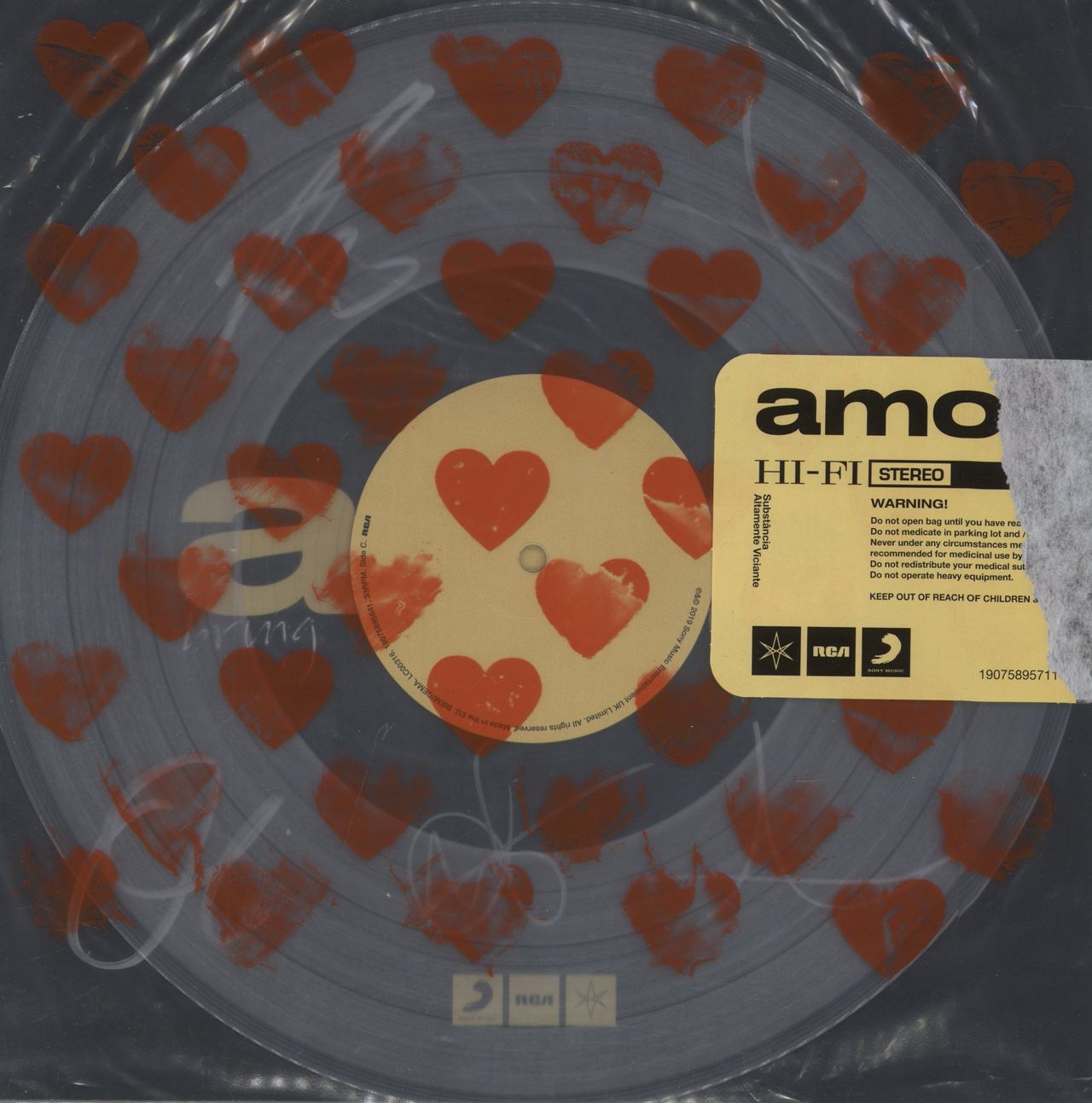 BRING ME THE HORIZON Amo (2019 UK/EU limited edition 13-track double LP pressed on CLEAR VINYL, with housed in a printed clear PVC envelope and hype-stickered printed zip-lock outer bag [don't worry the hype-sticker is designed to looklike that]. This copy includes the 6-page full-colour lyric, artwork & credit booklet, which is signed on the front in silver marker pen by Oliver Sykes, Lee Malia, Matt Kean, Matt Nicholls and the now departed Jordan Fish. The outer bag shows only a little general wear and both vinyl reveal minimal signs of play)