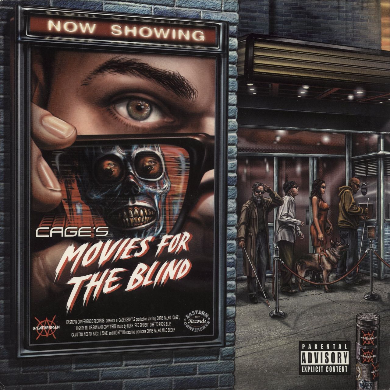 CAGE Movies For The Blind (2002 US 16-track double vinyl LP, the debut album from the cult horrorcore rapper, described by some as one of the greatest underground horrorcore albums ever to be released. Housed in a gatefold picture sleeve. Thesleeve has some light sticker residue towards the top right corner and some light edgewear. Despite this, the vinyl remains in stunning Excellent condition with minimal signs of any obvious wear. A very good example of this scarce, undergroundclassic HTR-102)