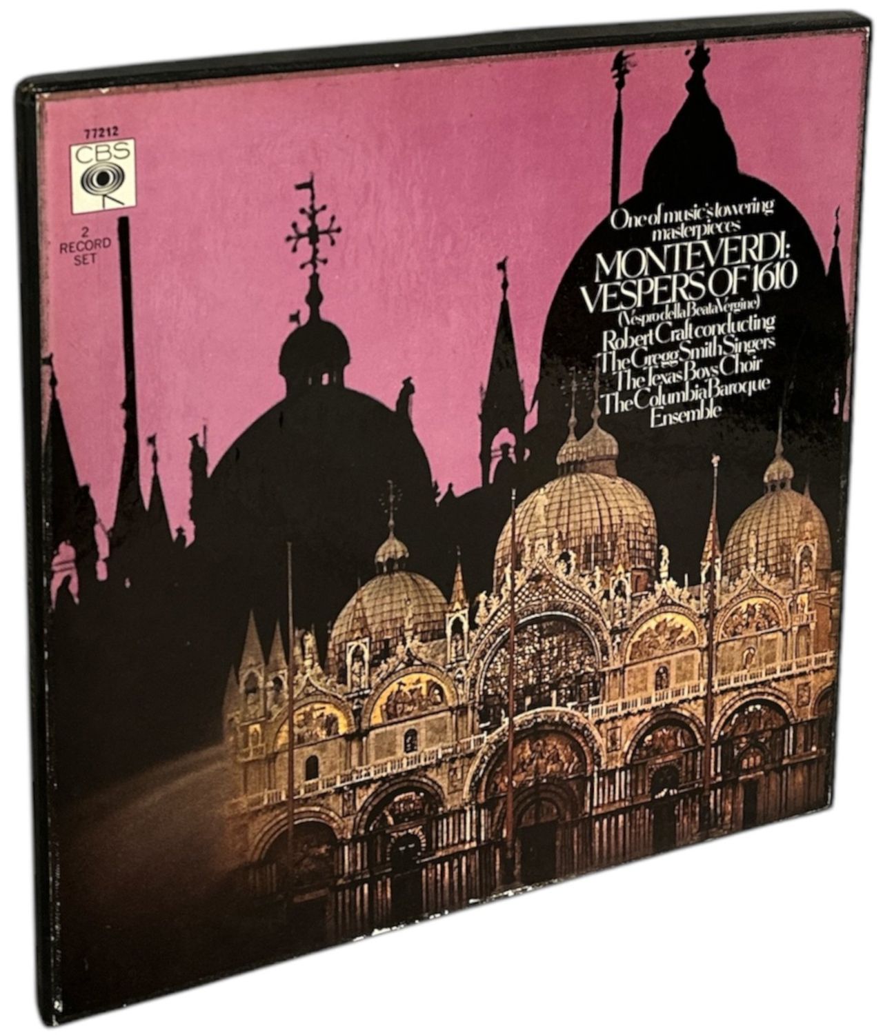 ROBERT CRAFT conducting THE GREGG SMITH SINGERS / THE TEXAS BOYS CHOIR / THE COLUMBIA BAROQUE ENSEMBLE Monteverdi: Vespers Of 1610 (Vespro Della Beata Vergine) (1967 UK 13-track stereo double vinyl LP, picture box with fold-out insert. The boxshows faint wear and the vinyl has minimal sign of play)