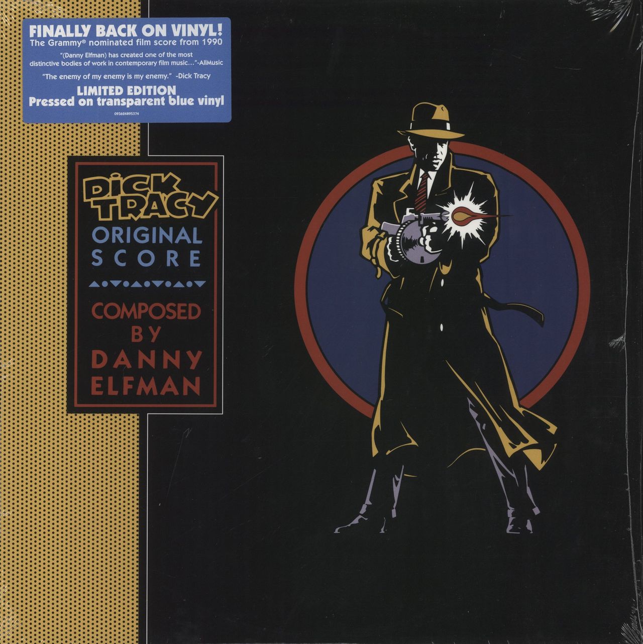 DANNY ELFMAN Dick Tracy (2021 US Limited Edition16-track LP, pressed on Transparent Blue Vinylfeaturing the Original Score to the motion picture starring Warren Beatty and Madonna. The glossy picture sleeve retains its hype stickered open shrink and illustrated credits inner. Although not sealed this copy remains in near as new condition)