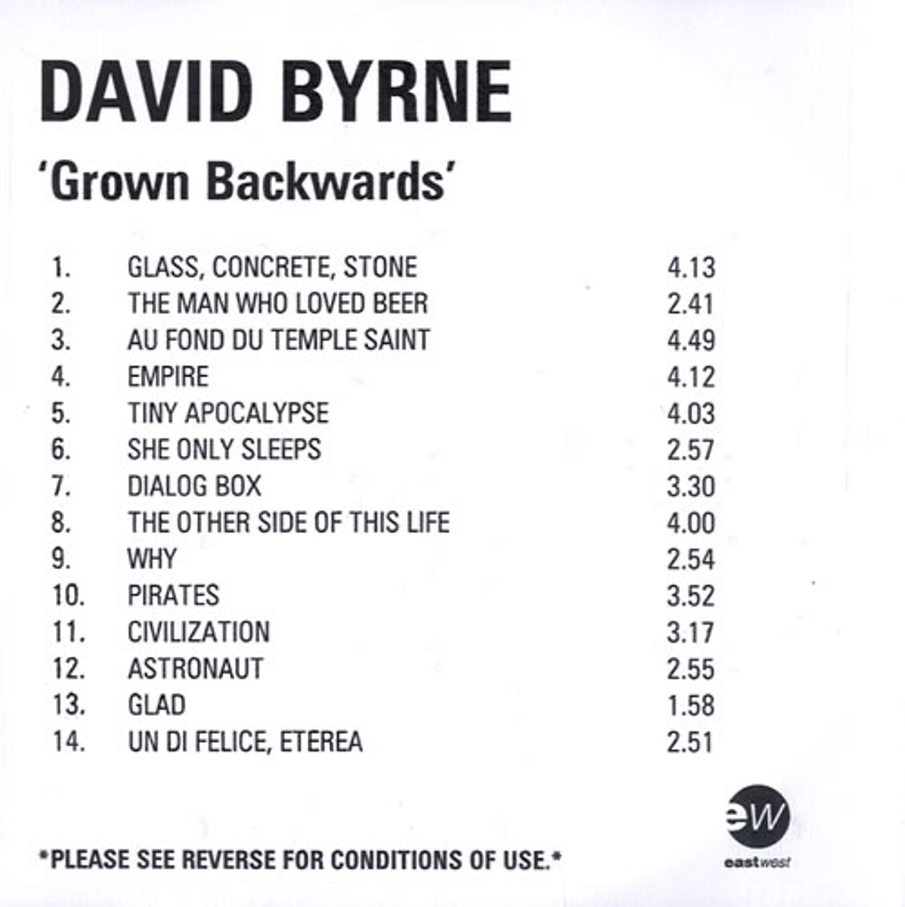 David Byrne Grown Backwards UK Promo CD-R acetate