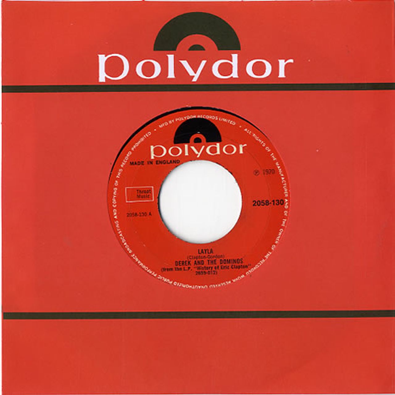 DEREK & THE DOMINOS Layla (Classic 1970 UK wide centred 7" vinyl single, also including Bell Bottom Blues, Polydor company die-cut paper sleeve)