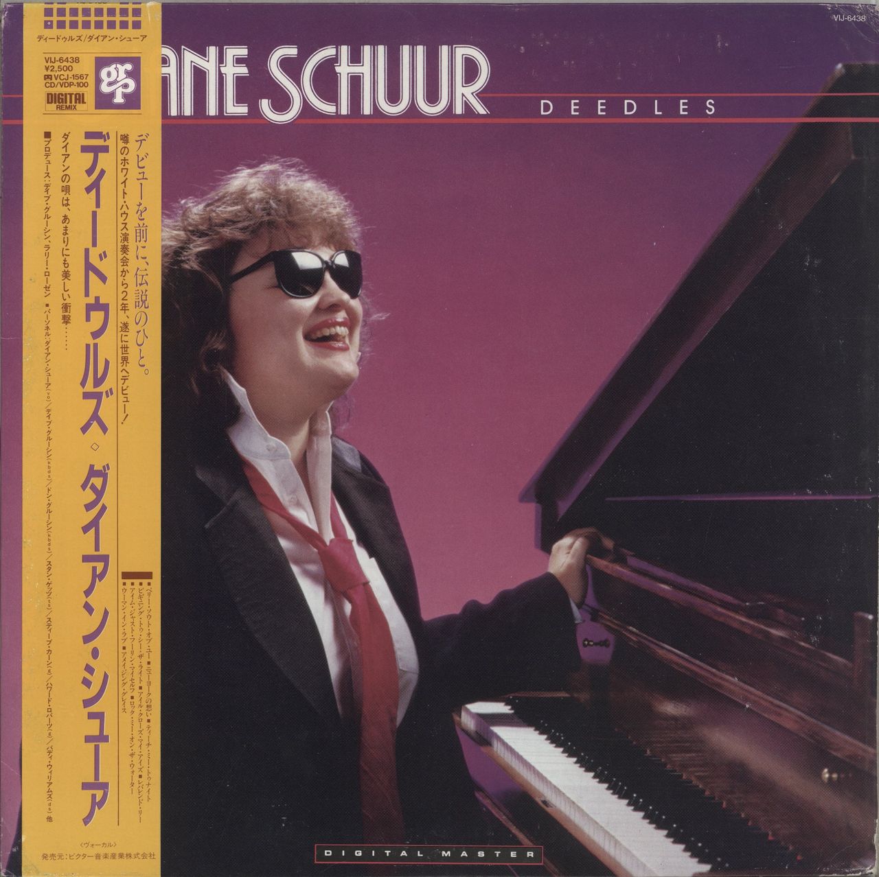 DIANE SCHUUR Deedles (1984 Japanese 10-track LP, also featuring the talents of Dave & Don Grusin, Stan Getz, Steve Khan & more, braille picture sleeve with lyric inner and wraparound obi strip. The sleeve has some mild edgewear whilst the vinyl is excellent with light play only VIJ-6438)