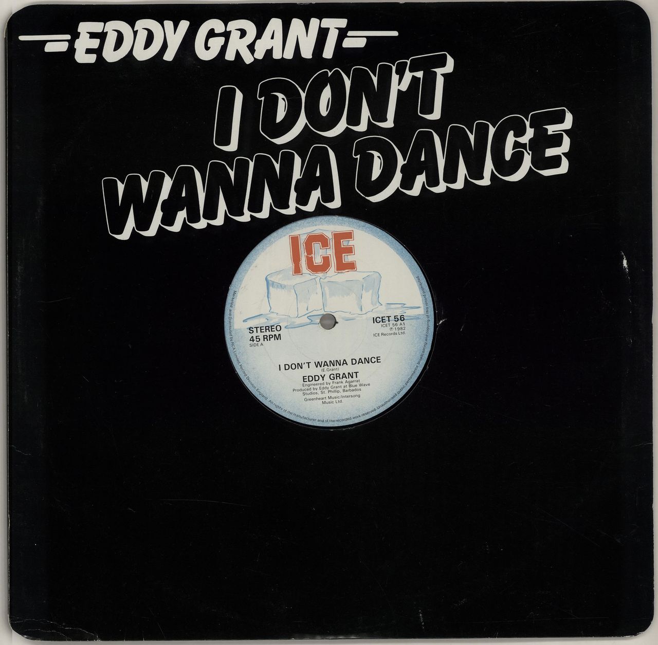 EDDY GRANT I Don't Wanna Dance (1982 UK 12" vinyl single, also including the Acapella version of the title track, custom die-cut titled sleeve ICET56)