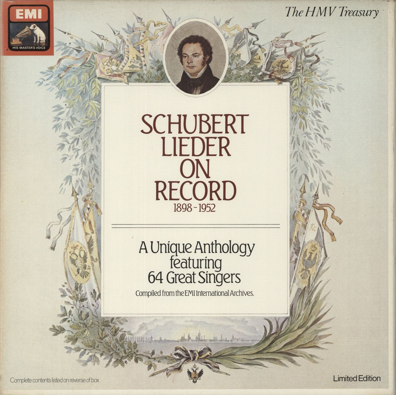 FRANZ SCHUBERT Schubert Lieder on Record 1898-1952 (1982 UK limited edition 126-track 8-LP mono vinyl set, featuring 64 great singers, picture box with 40-page libretto booklet. The box shows foxing and fading to the spine with no splits, whilst the vinyl is Near Mint RLS766)