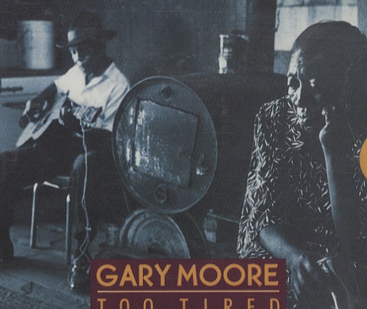 GARY MOORE featuring ALBERT COLLINS Too Tired (1990 UK limited special collectors edition 4-track CD, includes Texas Strut and the Live recordings of Oh Pretty Woman and Cold Cold Feeling, outer slipcase picture sleeve with lyric printed pull-out. The sleeve and pull-out disc holder show negligible signs of storage but are otherwise in superb shape with the disc itself in MINT condition VSCDX-1306)