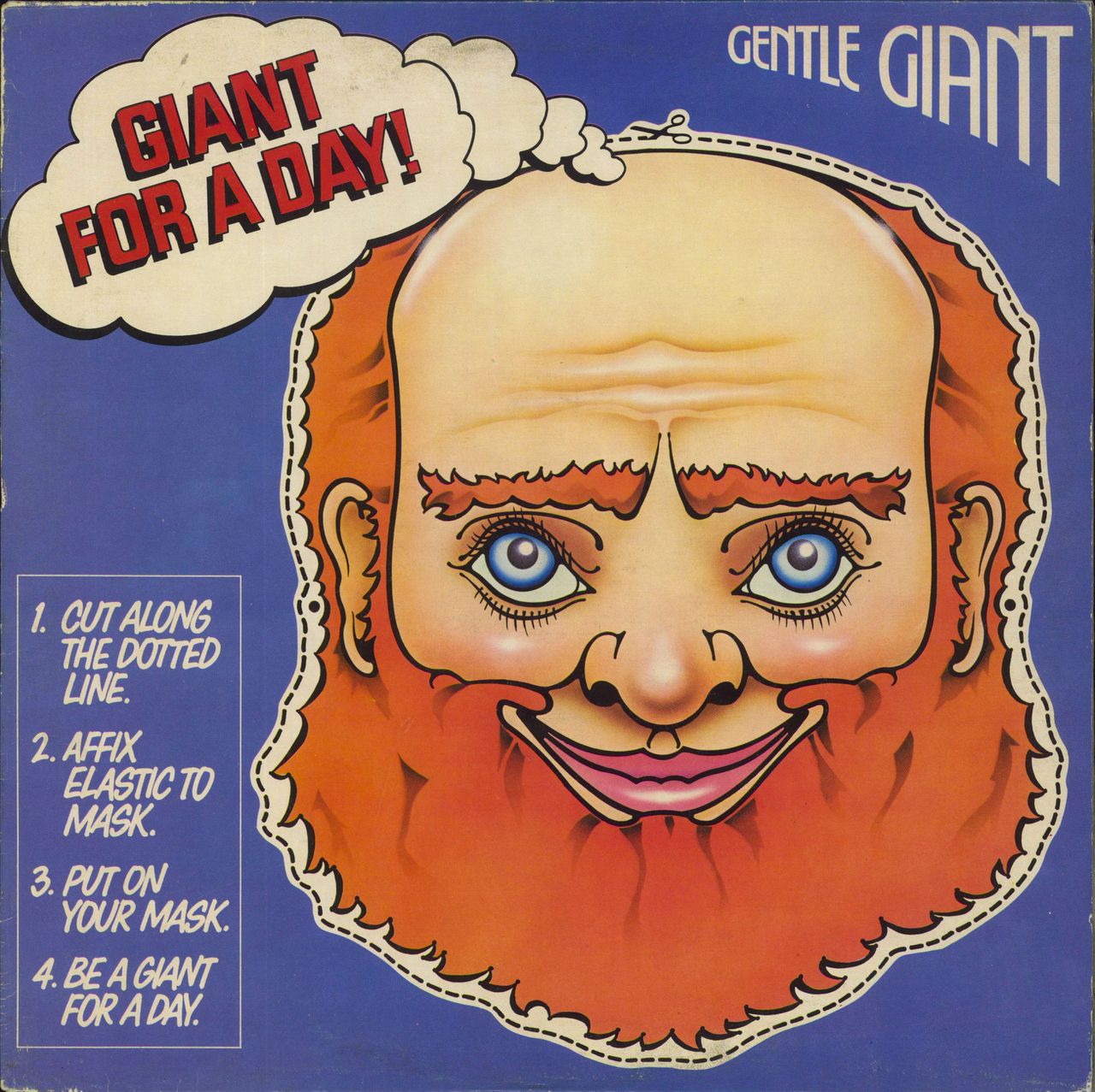 GENTLE GIANT Giant For A Day! (1978 Italian Chrysalis label issue 10-track vinyl LP, housed in a matt picture sleeve complete with the original lyric inner and cut-out mask insert!. Both sleeve and vinyl in Excellent condition)