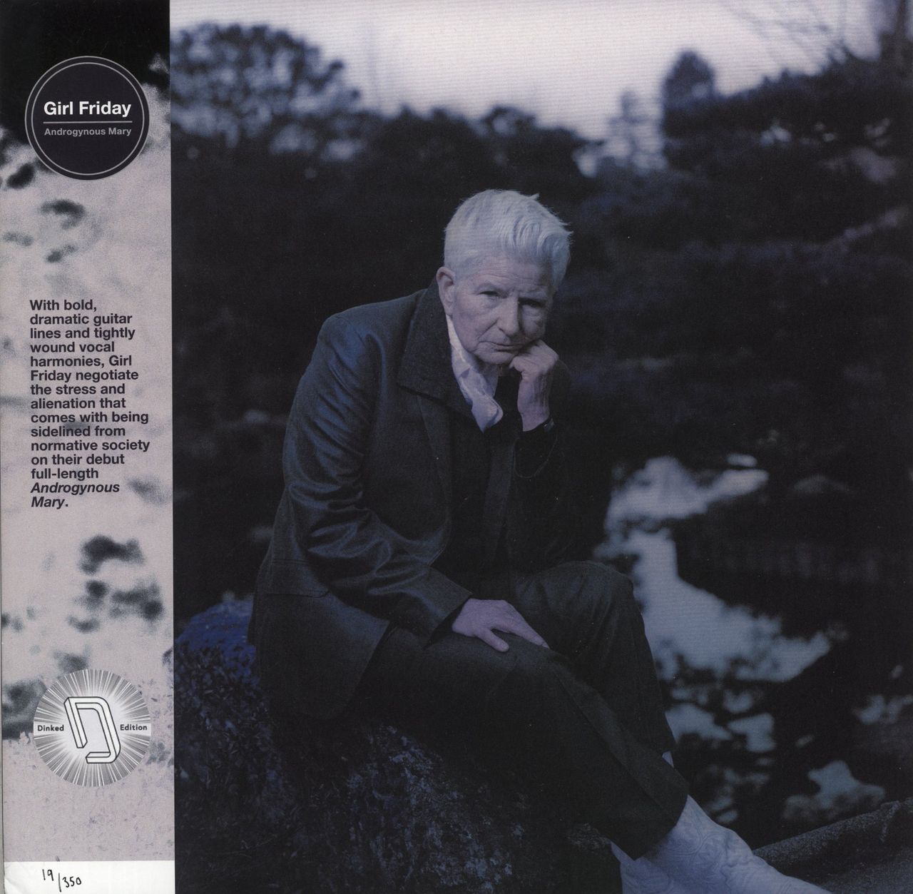 GIRL FRIDAY Androgynous Mary (Dinked Edition 2020 UK 10-track LP, pressed on Pink and White Vinyl. Debut album from the LA feminist indie rock band. Picture sleeve with lyric inner, download code and hand-numbered obi. This copy also includes a fully Autographed photo of the band. The sleeve has a notable bump and creasing to the bottom left corner but otherwise shows little wear. The vinyl is Near Mint. Limited to only 350 copies)