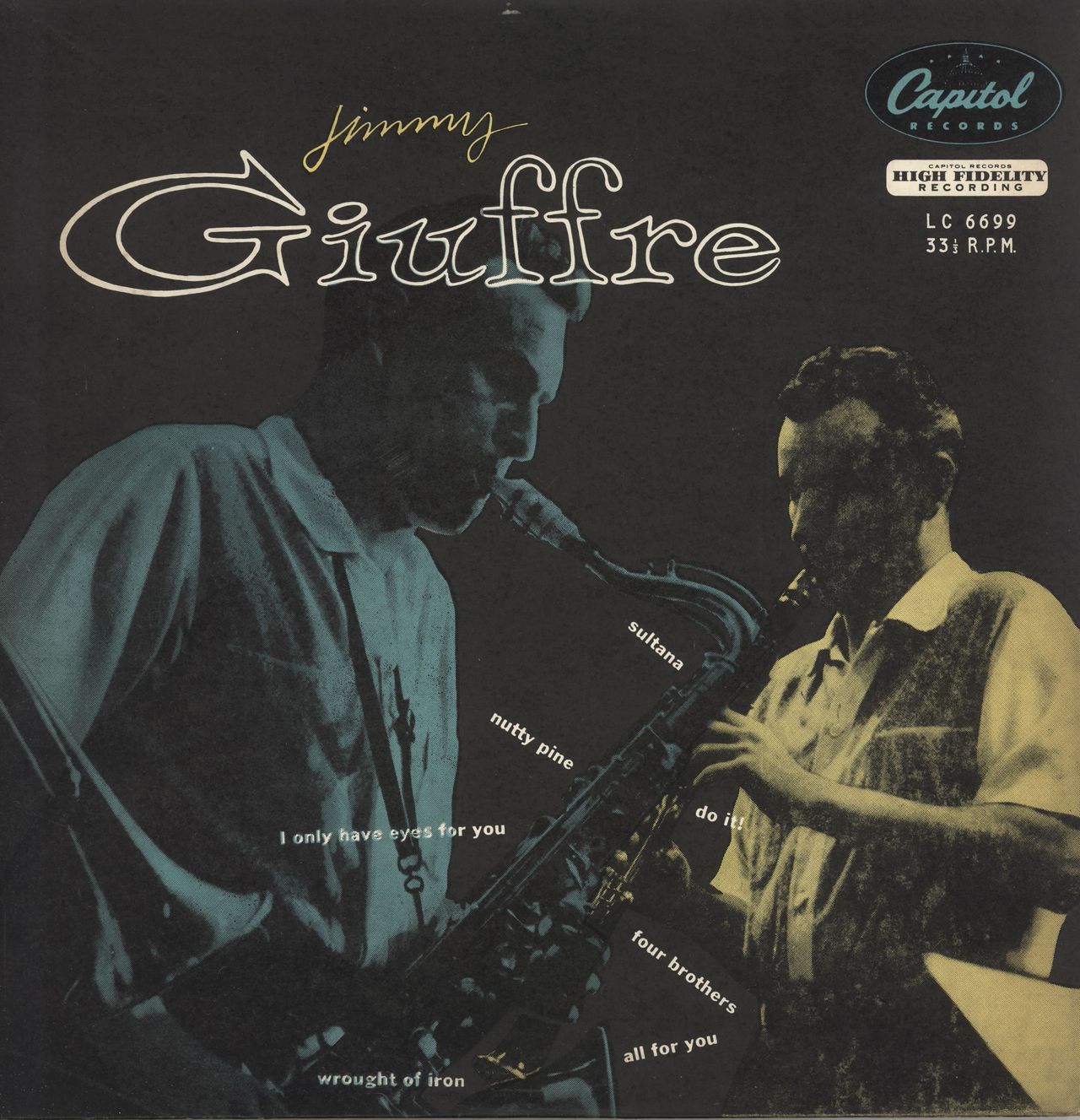 JIMMY GIUFFRE Jimmy Giuffre (Debut 1955 UK 7-track 10" mono LP on a purple & silver Capitol label, recorded in Hollywood in February & April the previous year, with backing from Bud Shank, Jack Sheldon, Shorty Rogers, Bob Enevoldsen, Russ Freeman, Ralph Pena or Curtis Counce & Shelly Manne. The scalloped flipback picture sleeve [VG+] shows some mild discolouring on the back with age & the vinyl grades VG+ with some minor cosmetic paper scuffs not upsetting play LC6699)