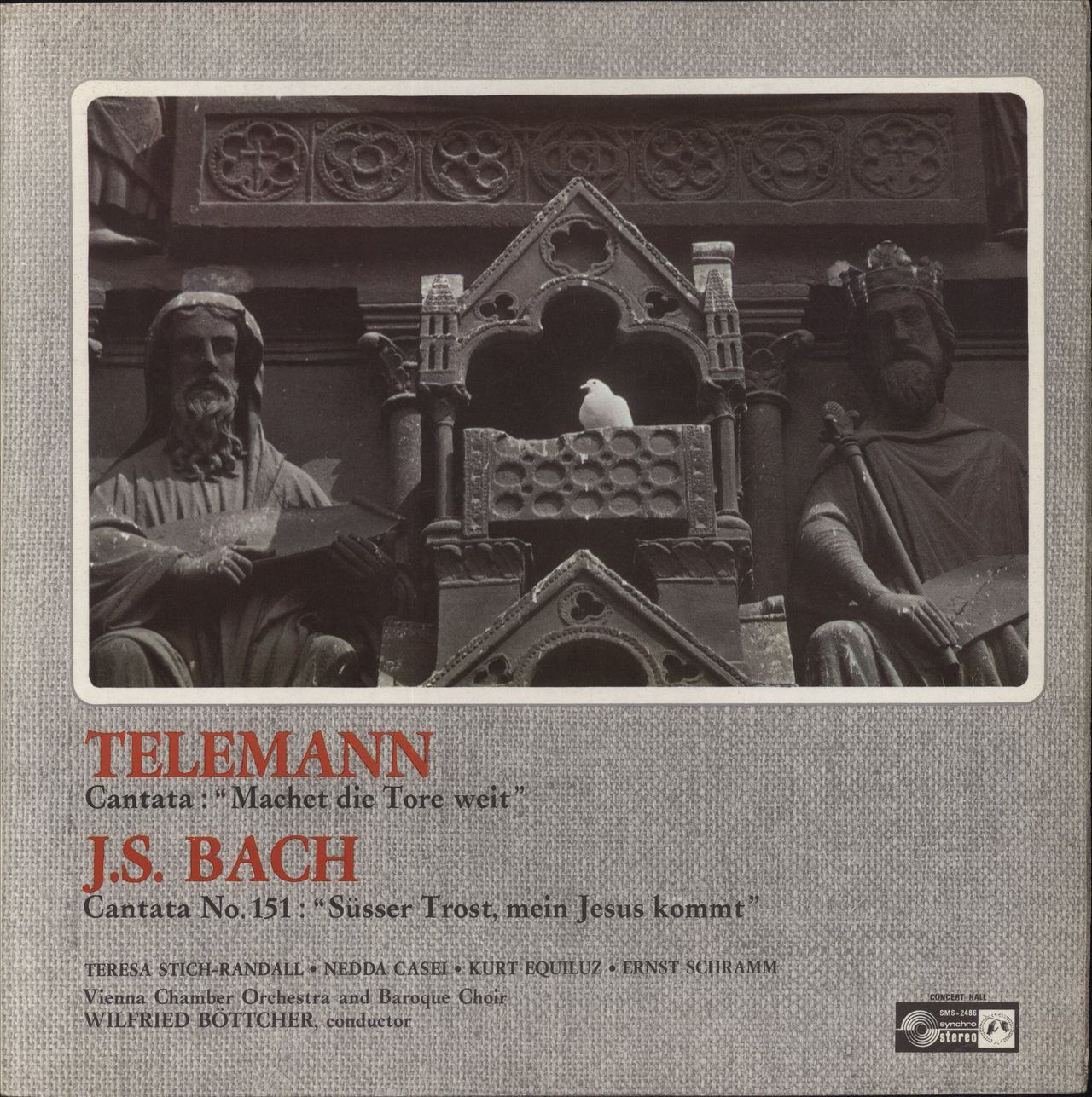 WILFRED BOTTCHER conducts the VIENNA CHAMBER ORCHESTRA BACH J. S. Bach: Cantates (1970s French 2-part stereo vinyl LP, front laminated flipback picture sleeve. The sleeve shows light wear and the vinyl has minimal sign of play SMS-2486)