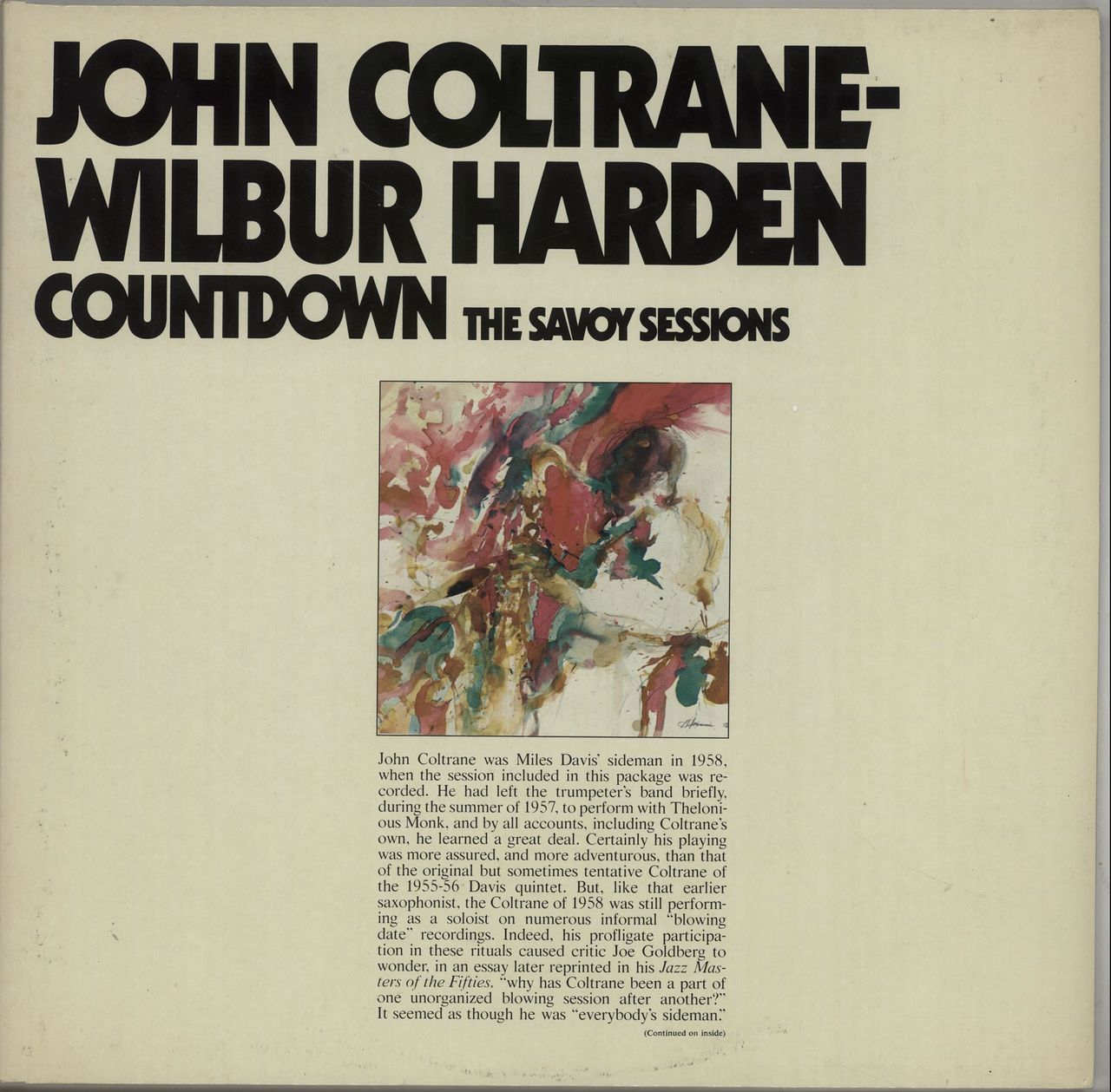 JOHN COLTRANE/ WILBUR HARDEN Countdown - The Savoy Sessions (1985 German 9-track double LP, gathering recordings & previously unissued takes of the March '58 session during a brief spell away from Miles Davis' group, also starring Tommy Flanagan, Doug Watkins & Louis Hayes. The gatefold picture sleeve shows some age and shelfwear & the vinyl looks barely played WL70529(2))
