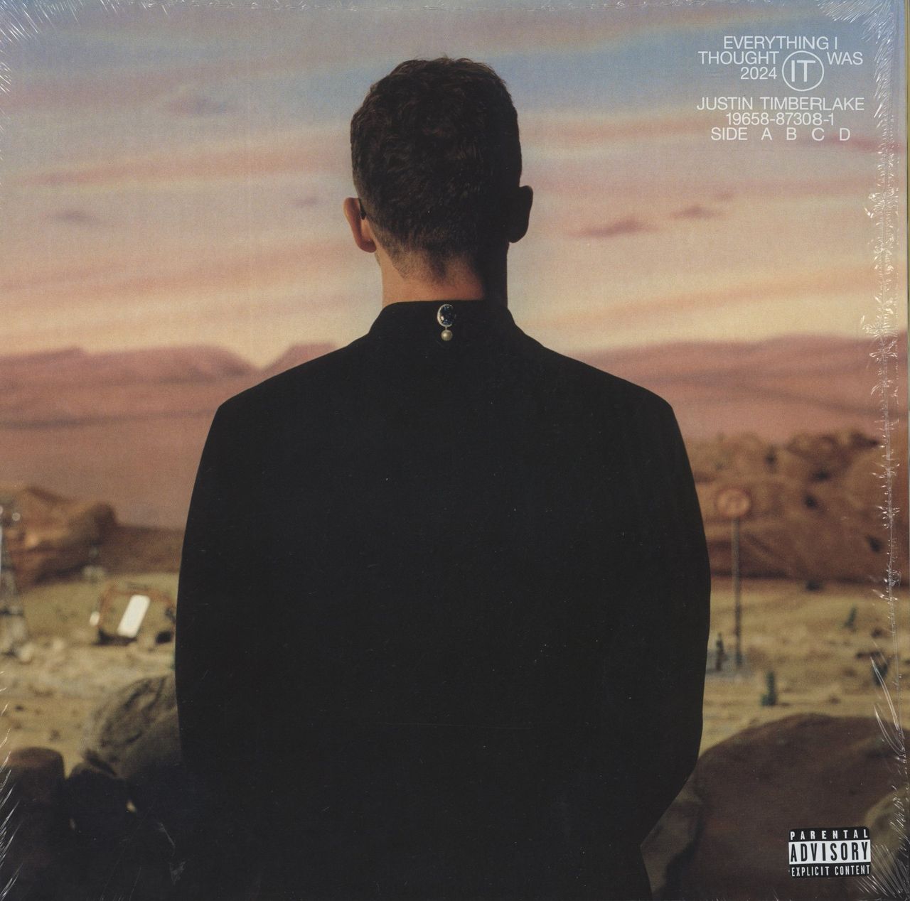JUSTIN TIMBERLAKE Everything I Thought It Was (2024 US Amazon exclusive limited edition 18-track LP pressed on BLACK SMOKE VINYL - his sixth studio album, including the singles Selfish and Drown. Housed in a gatefold picture sleeve with individual printed inners. The sleeve remains in the open shrink with title sticker. A Near Mint copy)