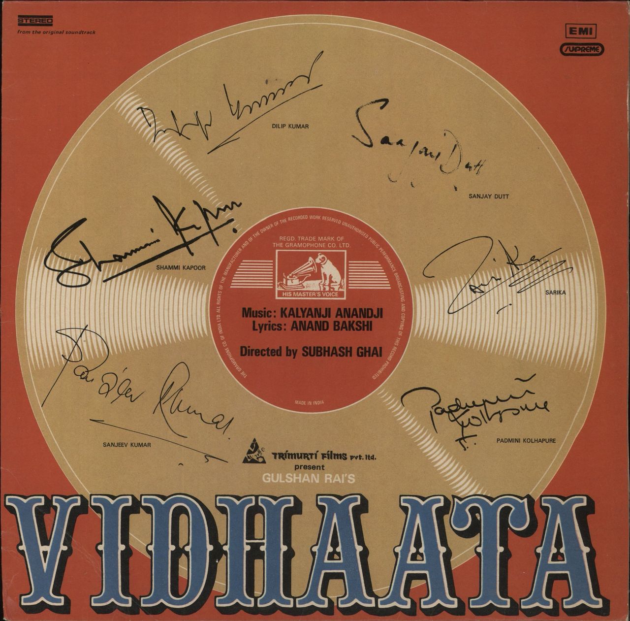ORIGINAL SOUNDTRACK Vidhaata (1982 Indian 7-track vinyl LP, Kalyanji-Anandji's movie score includes performances by Lata Mangeshkar, Asha Bhosle, Suresh Wadkar & Anwar, single-pocket picture sleeve. The sleeve has a name annotation to the reverse and the vinyl is NearMint)