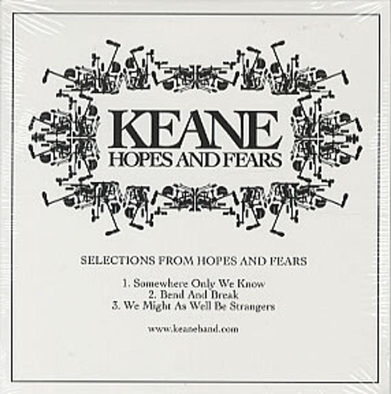 KEANE Hopes And Fears (2004 US Interscope Records 3-track promotional CD album sampler including Somewhere Only We Know, Bend And Break & We Might As Well Be Strangers, custom barcoded card picture sleeve INTR11221-2)