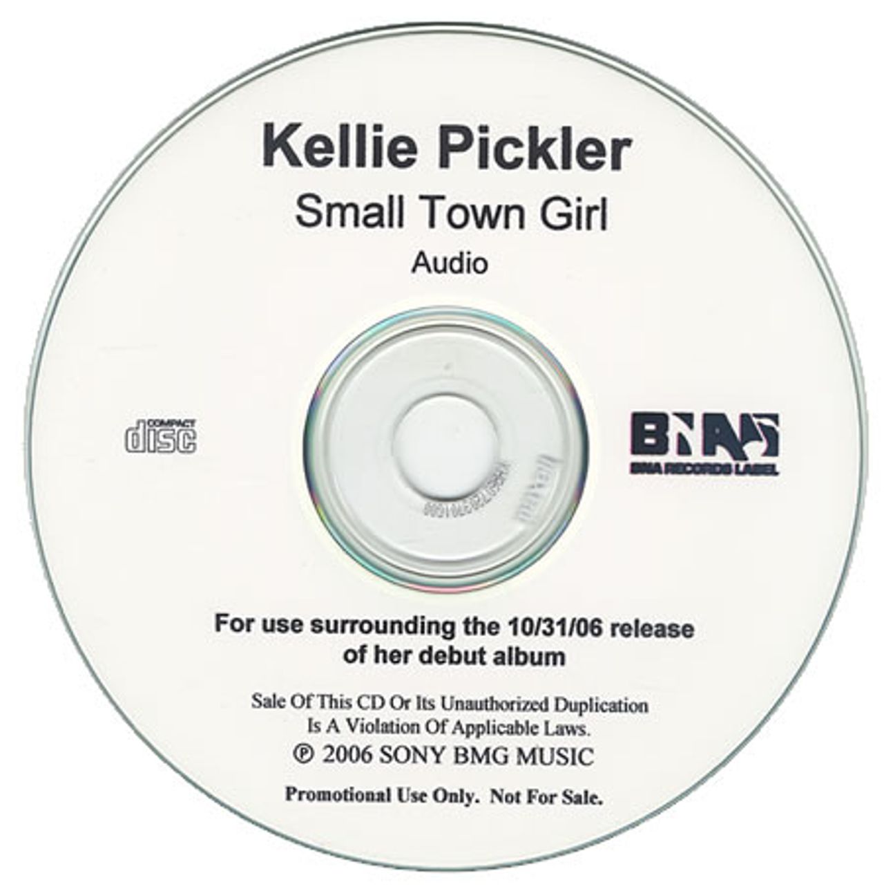KELLIE PICKLER Small Town Girl - Interview (Official 2006 US BNA/Sony BMG label 38-track promotional only interview CD-R acetate, this features an interview surrounding the debut album with a running time of 15:49 mminutes, custom printed disc)