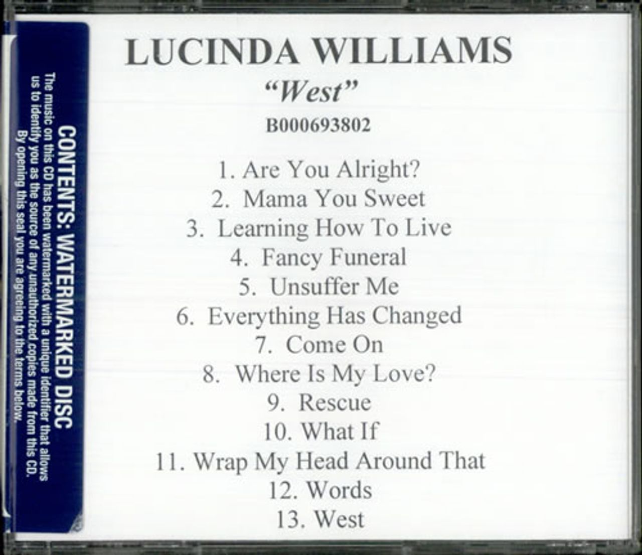 LUCINDA WILLIAMS West (Official 2007 US Lost Highway label