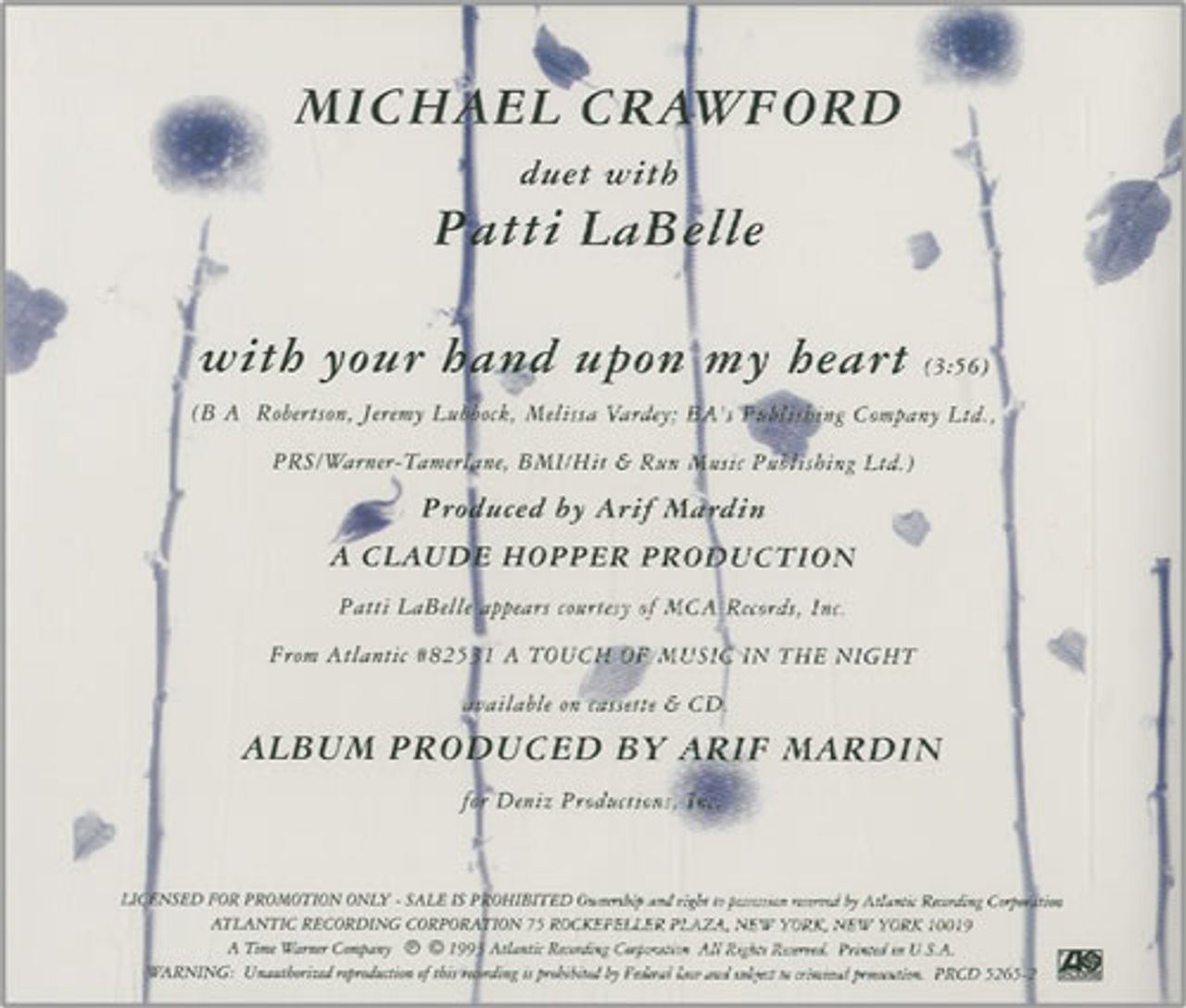 Michael Crawford With Your Hand Upon My Heart US Promo CD single