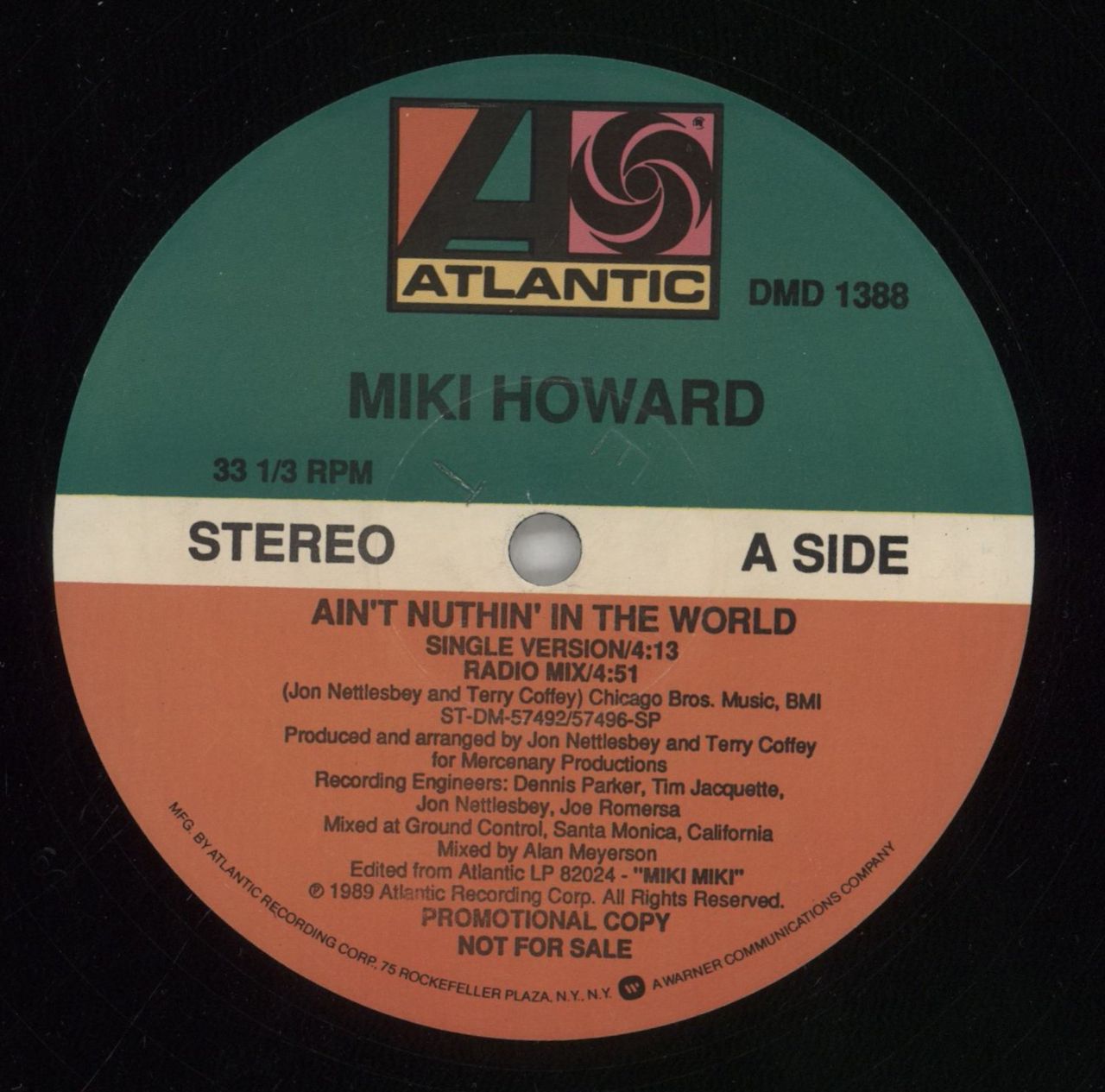 MIKI HOWARD Ain't Nuthin' In The World (1989 US 4-track promotional vinyl 12" featuring the Single Version, Radio Mix, Extended Version and Instrumental. With custom printed labels and housed in a plain die-cut card sleeve DMD1388)