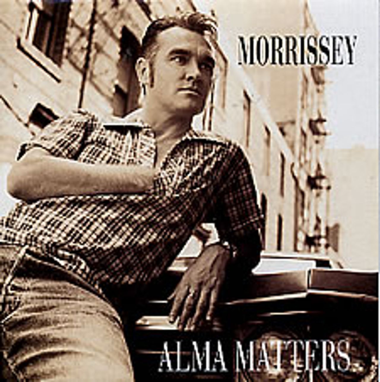 MORRISSEY Alma Matters (Scarce 1997 UK 7" vinyl single with beautiful early '70s style Island pink rimmed 'palm tree' labels, also including Heir Apparent. The glossy card picture sleeve displays minimal wear and the vinyl looks barely played IS667)