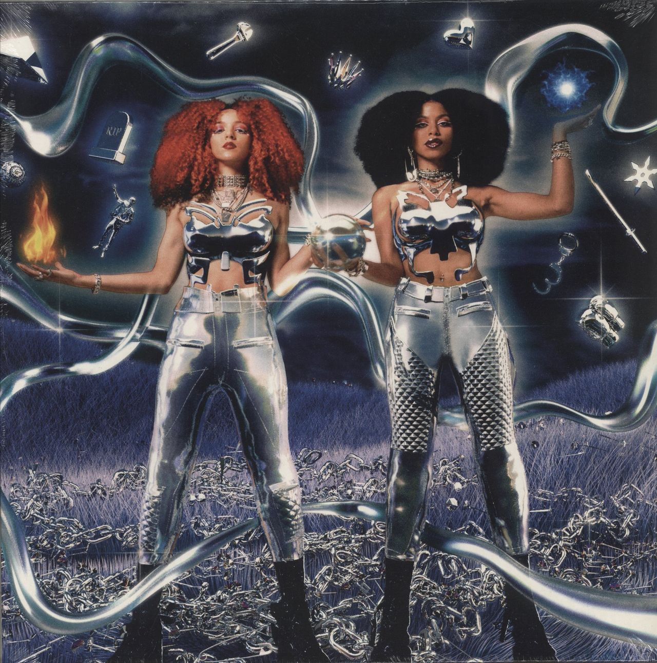 NOVA TWINS Supernova (2022 UK 11-track vinyl LP. Acclaimed second album from the UK alt-rock duo, featuring the singles Antagonist, K.M.B, and Cleopatra. Picture sleeve. This copy includes a metallic slipcase case andan Autographed print. The slip case shows a few scuff marks but the sleeve itself remains sealed in the factory shrink with the vinyl unplayed)