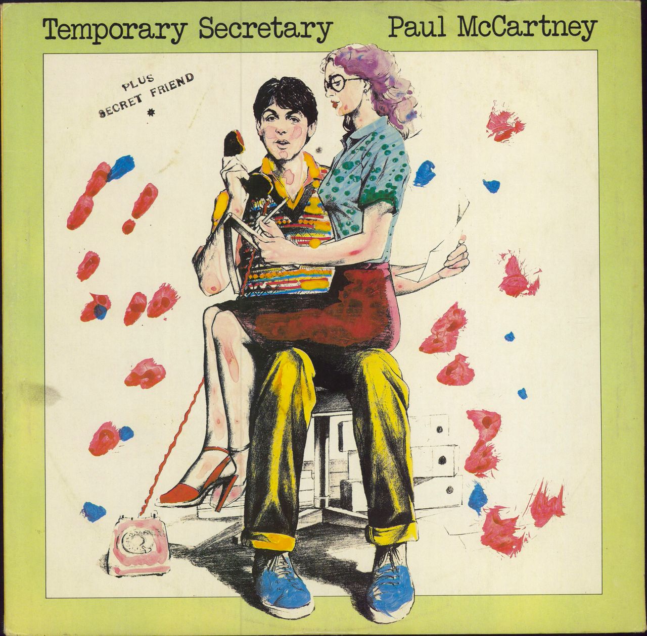 PAUL MCCARTNEY Temporary Secretary (Rare 1980 UK limited edition 12" vinyl single - Hard to find Macca solo single that has been a secret weapon for the more discerning DJ in recent years. The title track is oddball electro-pop backed with Secret Friend - ten minutes of swirling synths & drum machines [all played by the great man himself]. The picture sleeve shows some light age discolouration & shelfwear, the vinyl has a few minor surface scuffs showing evidence of play and grades Excellent 12R6039)