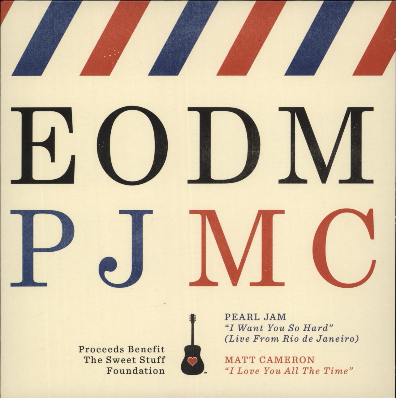 PEARL JAM / MATT CAMERON EODM PJMC (2015 US online only wide centre 7" vinyl single available through the bands official website, includes I Want You So Hard (Boy's Bad News) by Pearl Jam recorded live at Estadio Maracanã in Rio de Janeiro, 22nd November 2015. Also includes I Love You All The Time by Matt Cameron. Housed in a picture sleeve, and remains in a 'near mint' condition)