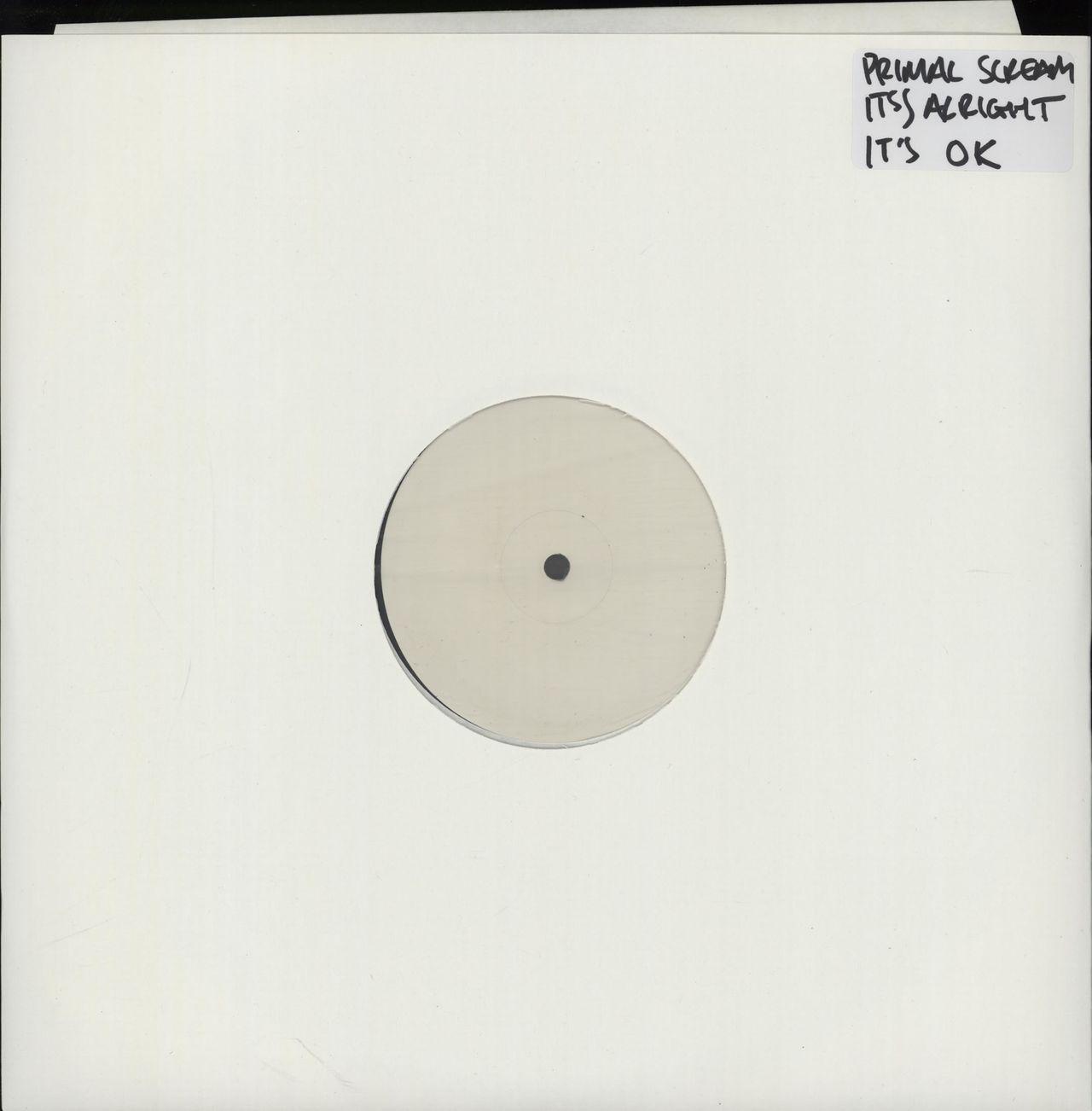 PRIMAL SCREAM It's Alright, It's OK (2013 UK white label vinyl 12" Test Pressing for the single release, also including The Fire Of Love. Plain white labels in a plain die-cut card sleeve with Hand annotated title sticker attached. This example remains in a 'near as new' condition with little signs of play)
