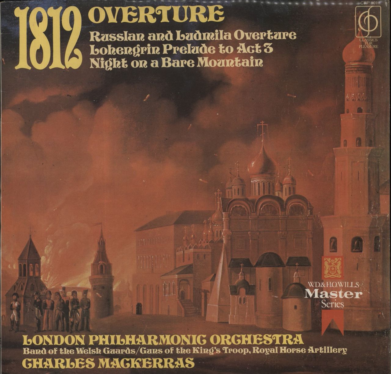 PYOTR ILYICH TCHAIKOVSKY 1812 Overture ('70s UK issue 4-track vinyl LP, released as part of the W.D. & H.O. Wills Master Series. With the London Philharmonic playing the ever popular Overture on the first side whilst on side two there is a selection of pieces by Wagner and Mussorgsky, all conducted by Sir Charles Mackerras, picture sleeve with detailed liner notes on the reverse. The sleeve has a little wear to show for its years whilst the vinyl appears rarely played CFP101)