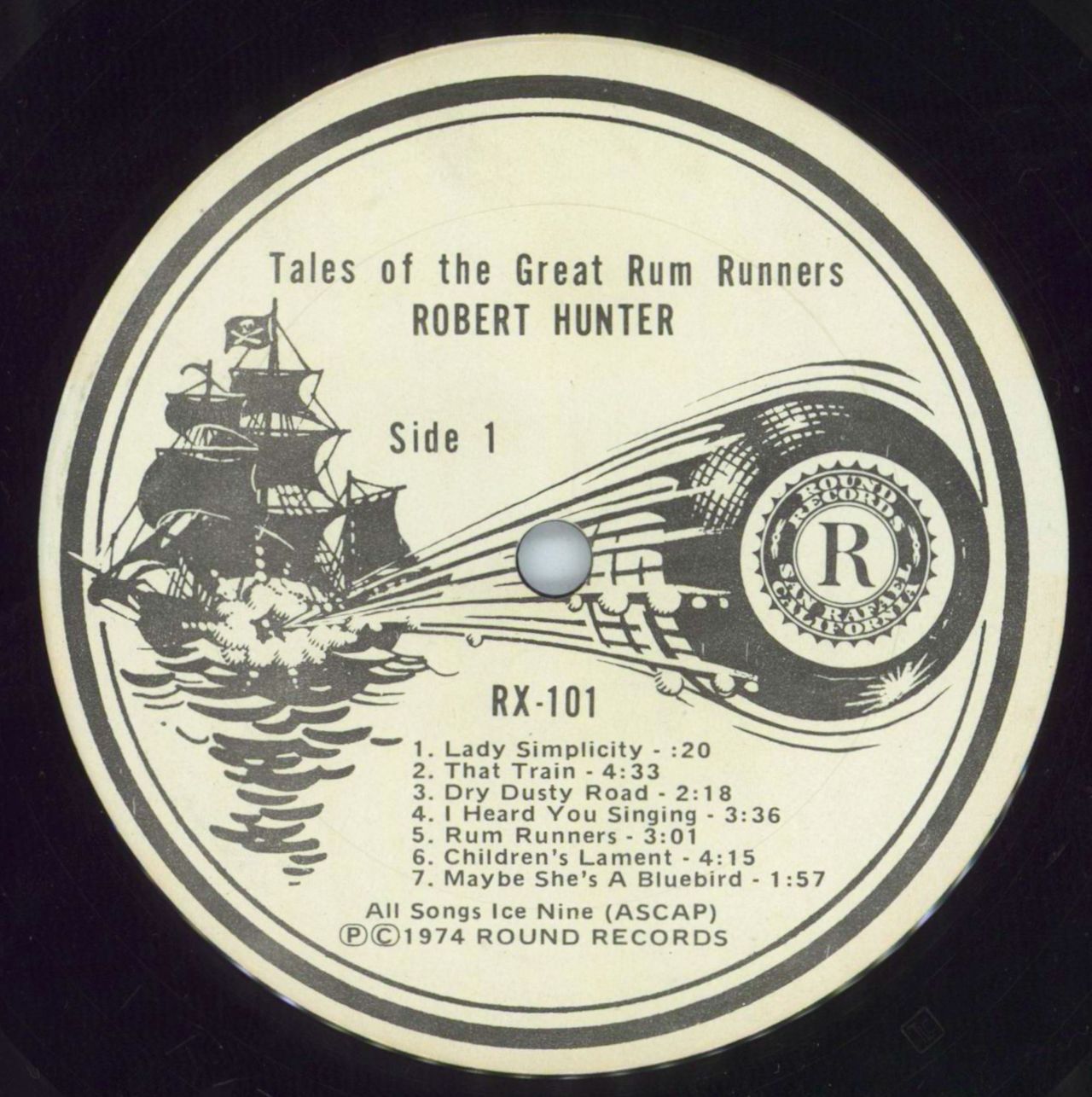 ROBERT HUNTER Tales Of The Great Rum Runners (1974 US Round Records 13-track vinyl LP, housed in a back pasted picture sleeve. The sleeve displays only light wear and the vinyl has very light signs of play RX101)