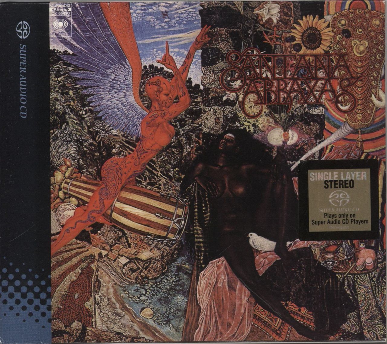 SANTANA Abraxas (Limited Edition 2001 US 12-track DSD Mastering Single Layer SACD [Super High Material SACD - fully compatible with regular SACD players but not on standard CD players], the 1970 album classic now sounding better than ever,expanded to include three previously unreleased bonus tracks recorded live at the Royal Albert Hall on April 18, 1970. Comes housed in an album jewel case complete with the picture sleeve/info booklet & gold hype stickered slipcase)