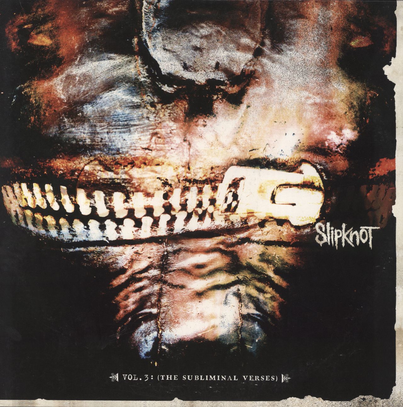 SLIPKNOT Vol. 3: The Subliminal Verses (Rare 2014 UK Record Store Day Exclusive limited 10th Anniversary edition 14-track double LP pressed on Clear Vinyl. The third studio album from American heavymetal group originally released in 2004. Housed in a gatefold picture sleeve with printed inners. The sleeve shows minimal wear, the inners show no rips or tears and the vinyl remains in Near Mint condition. A nice example and this rare and hard to find limited pressing RR7576-1)