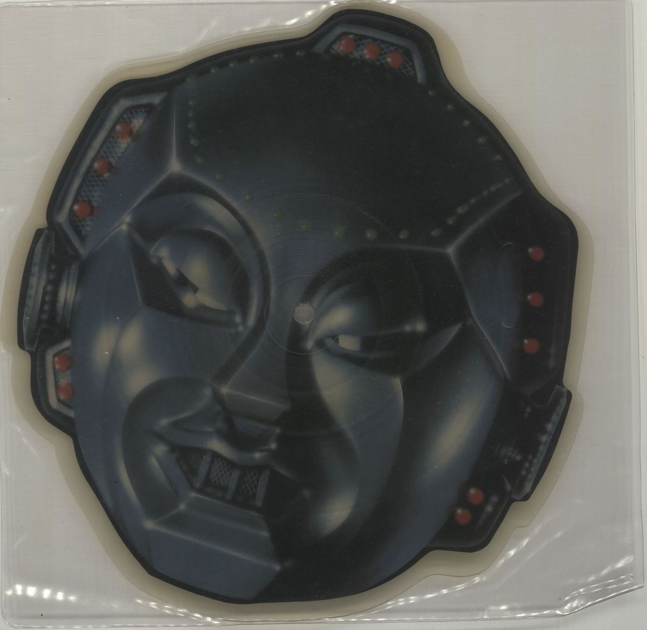 STYX Don't Let It End (1983 UK limited edition 'Robot Head' shaped 7" Picture Disc single, also including Rockin' The Paradise, clear PVC sleeve. The disc reveals some minor surface scuffs over time & remains in Excellent condition AMX120)