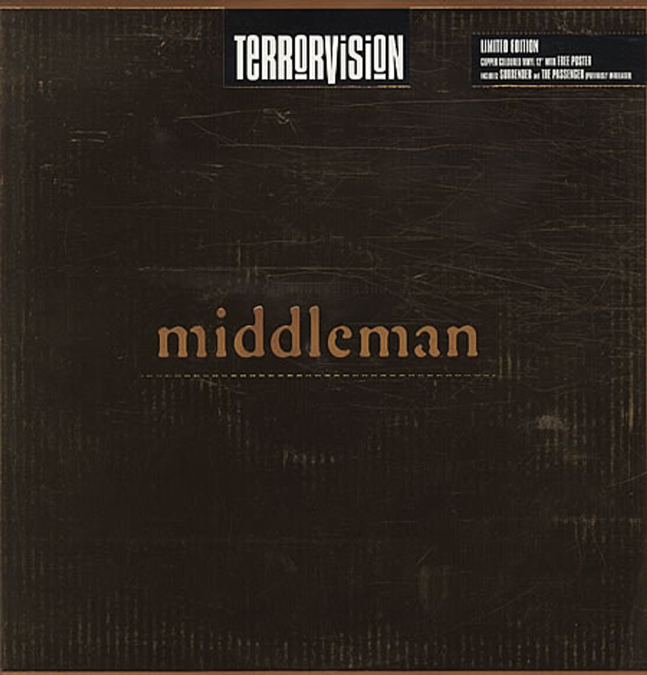 TERRORVISION Middleman (1994 UK limited edition 3-track COPPER vinyl 12" single, also including Surrender and The Passenger, complete with bonus fold out poster, textured metallic gold/bronze picture sleeve 12VEGAS7)