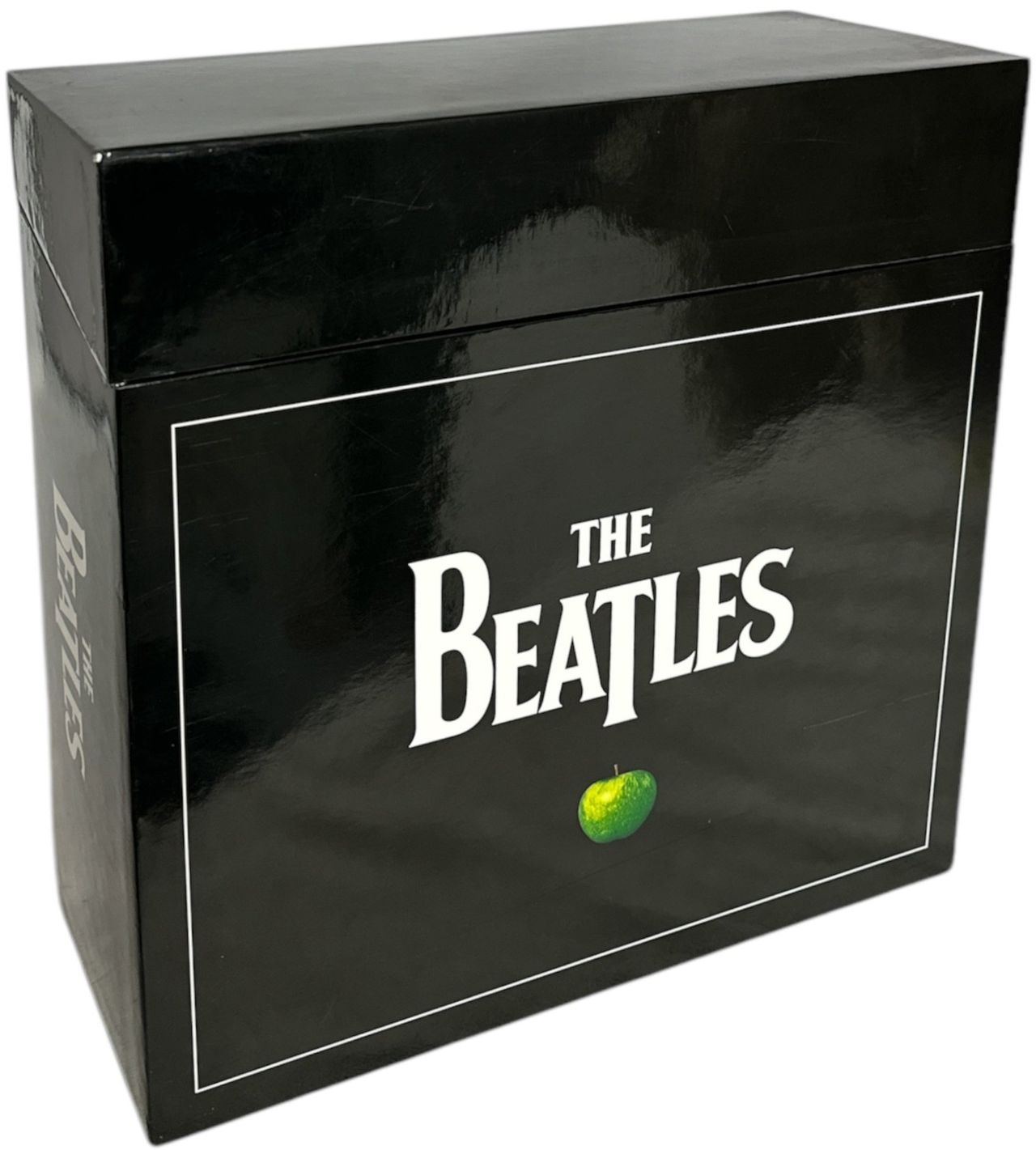 THE BEATLES The Beatles In Stereo (Limited Edition 2012 UK/EU SIXTEEN LP box set comprising their original studio records, featuring the 13 studio albums, including Magical Mystery Tour & the double LP of Past Masters, all remasteredin stereo & pressed on 180gram Vinyl. Each record is presented in the original UK format & replicates the original album's artwork with their relevant inserts. Comes complete with an exclusive 252-page large format hardback book which tells the story of The Beatles album by album, with previously unseen photos & fascinating new essays on the historical importance of vinyl & its mastering process. All parts are housed in a hefty gloss-finish black box with lift up lid & the printed outer card slipcase. The packaging reveals some light scuffs & scrape marks from shelf wear [1" split to the side of the delicate card slipcase] & is otherwise in Excellent condition & the heavyweight vinyl is Near Mint)