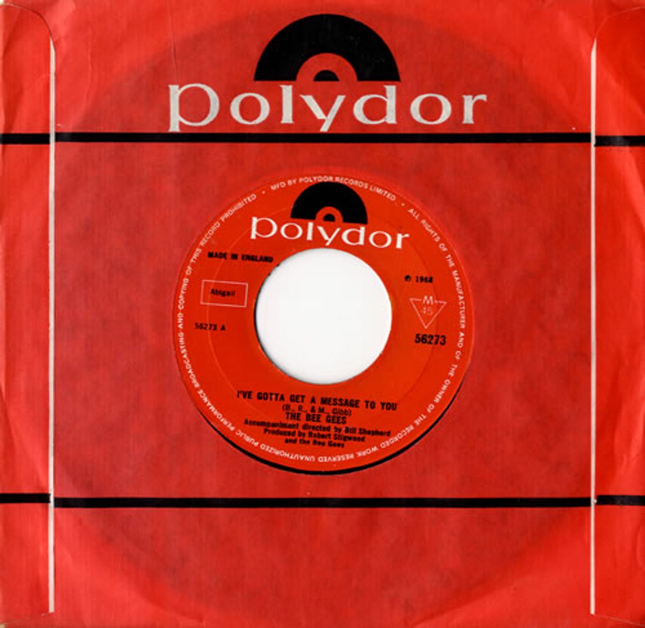 BEE GEES I've Gotta Get A Message To You (1968 UK wide centred 7" vinyl single, also including Kitty Can, Polydor company die-cut paper sleeve)