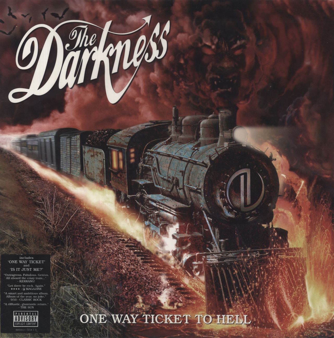 THE DARKNESS One Way Ticket To Hell... And Back (Rare 2005 UK 10-track LP, the second album from the British rock group & the follow-up to their #1 award-winning 'Permission To Land' album, produced by the legendary Roy Thomas Baker [Queen, David Bowie, Rolling Stones, Free, The Who]. Includes the singles One Way Ticket & Is It Just Me, housed in a deluxe fully glossed gatefold picture sleeve with the original song hype sticker attached & lyric inner enclosed. The sleeve shows verylight wear and the vinyl has minimal signs of play, a fantastic example of this now hard to find pressing)