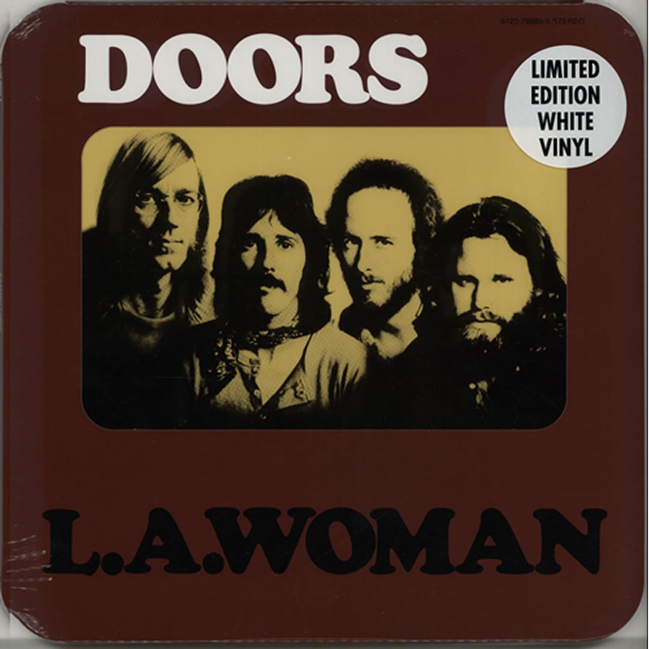 THE DOORS L.A. Woman (2015 UK limited edition 10-track LP pressed on 180gram White Vinyl originally released in 1971, including Love Her Madly and Riders On The Storm. Housed in a sealed & embossed die-cut round cornered picturesleeve with printed clear plastic window and yellow inner sleeve, replicating the original artwork)