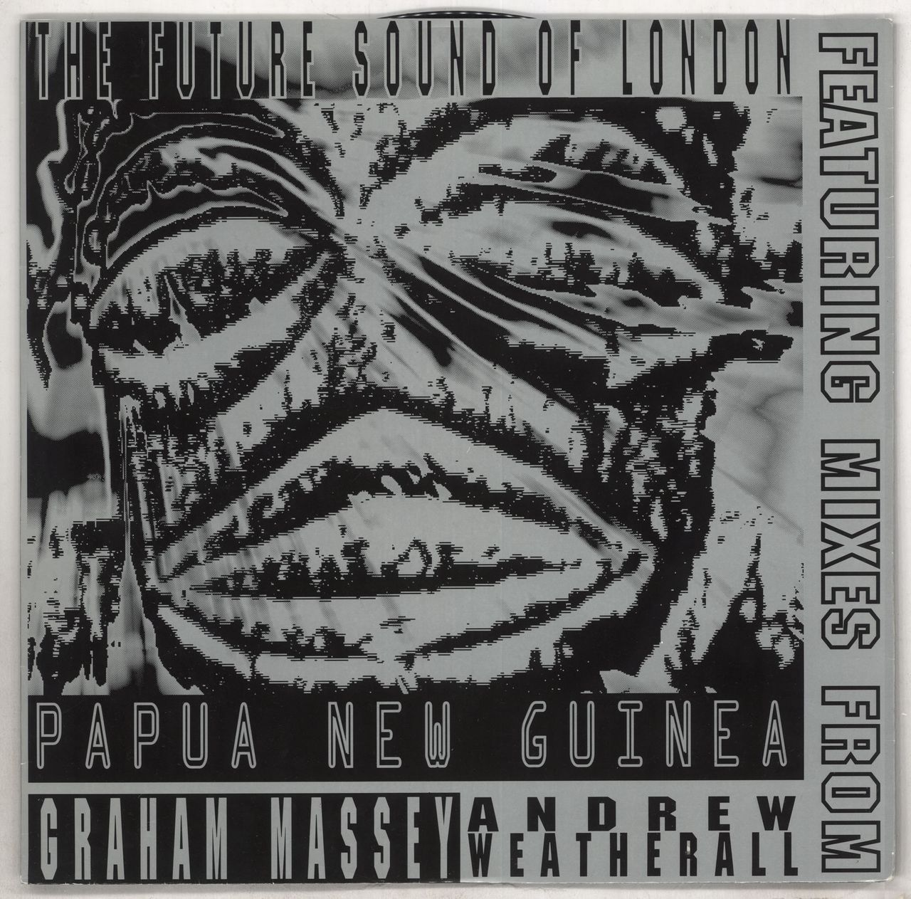 FUTURE SOUND OF LONDON Papua New Guinea (1992 UK 7-track 12" vinyl single including the Original 12" Mix alongside a selection of remixes by Andrew Weatherall and Graham Massey. The glossy black & silver picture sleeve shows minimal wear whilethe vinyl remains in excellent condition with very little sign of play indeed 12TOT17R)