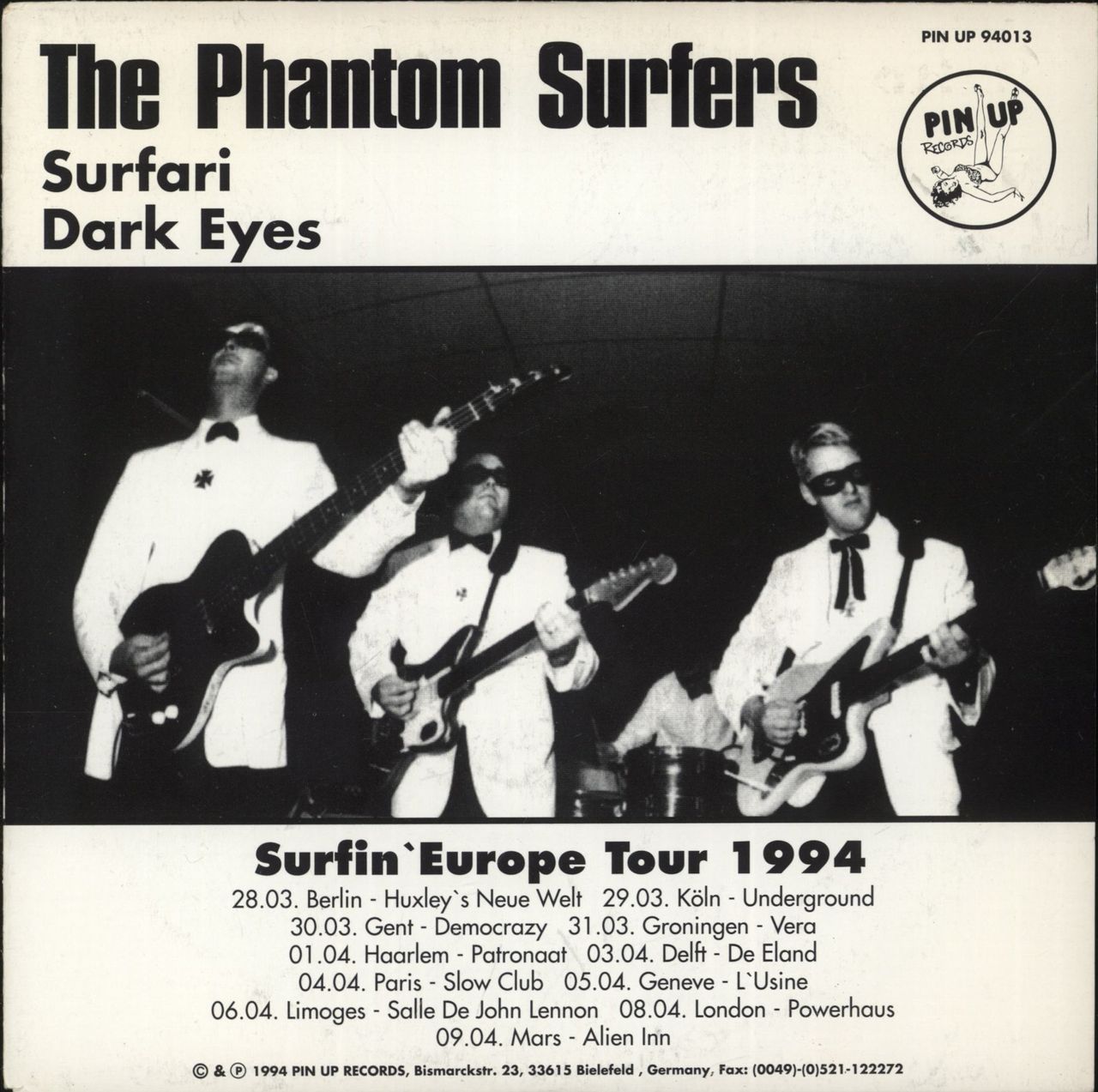 THE PHANTOM SURFERS / THE ASTRONAUTS Surfari / Nutbreaker (1994 German 5-track wide centre 7" vinyl split EP, from the American and German surf rock bands. Picture sleeve with 1994 tour dates. An Excellent copy PINUP94013)