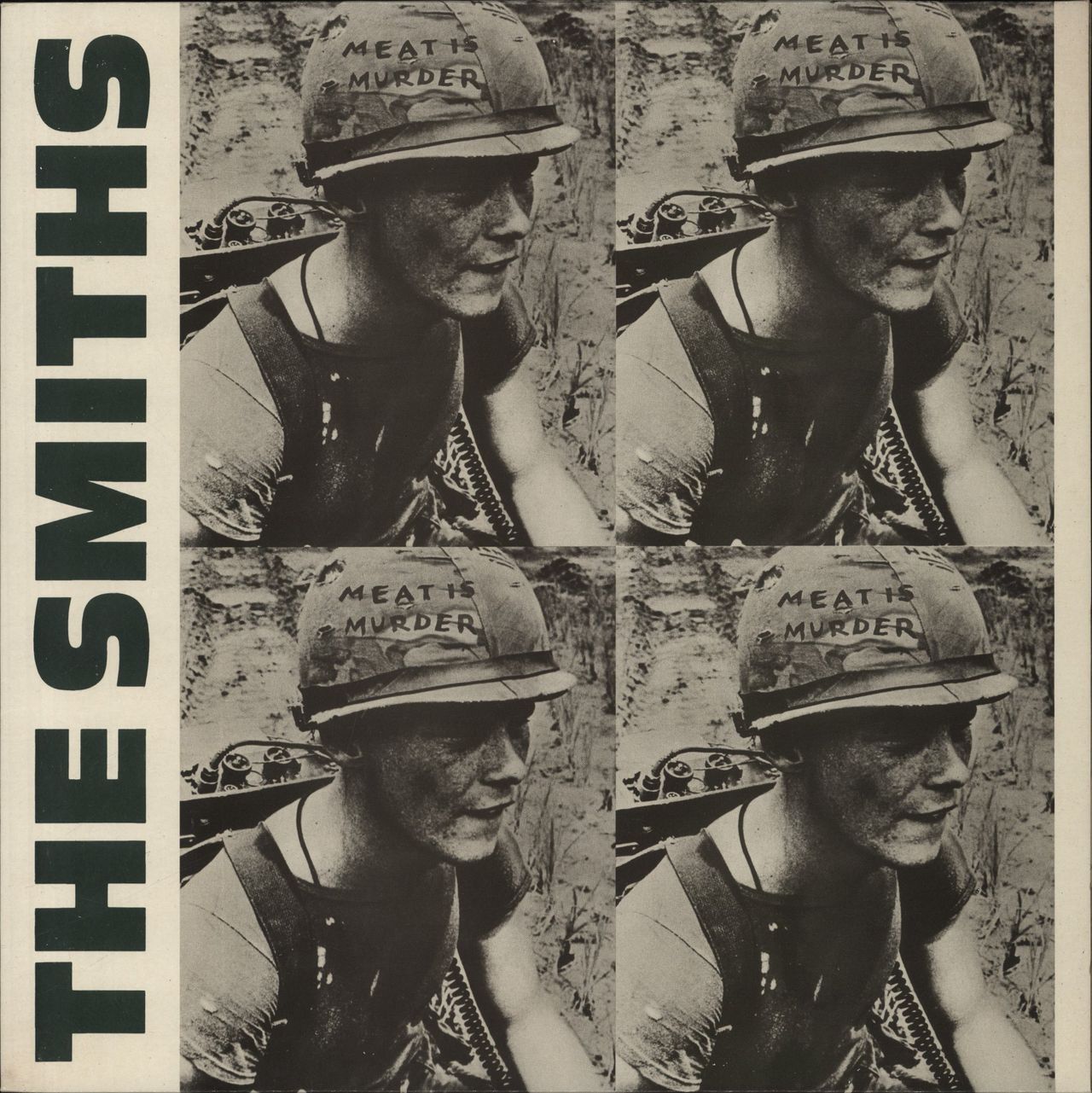 THE SMITHS Meat Is Murder (Classic 1985 UK 9-track vinyl LP with the bizarre messages in the run off groove area: 'Illness As Art' on side one & 'Doing The Wythenshaw Waltz' on side two, signifying the first pressing, complete with the illustrated lyric inner & non-barcoded picture sleeve. The sleeve is Excellent with only minor edge/shelf wear. The vinyl is clean & in Excellent condition with a little spindlewear from play ROUGH81)