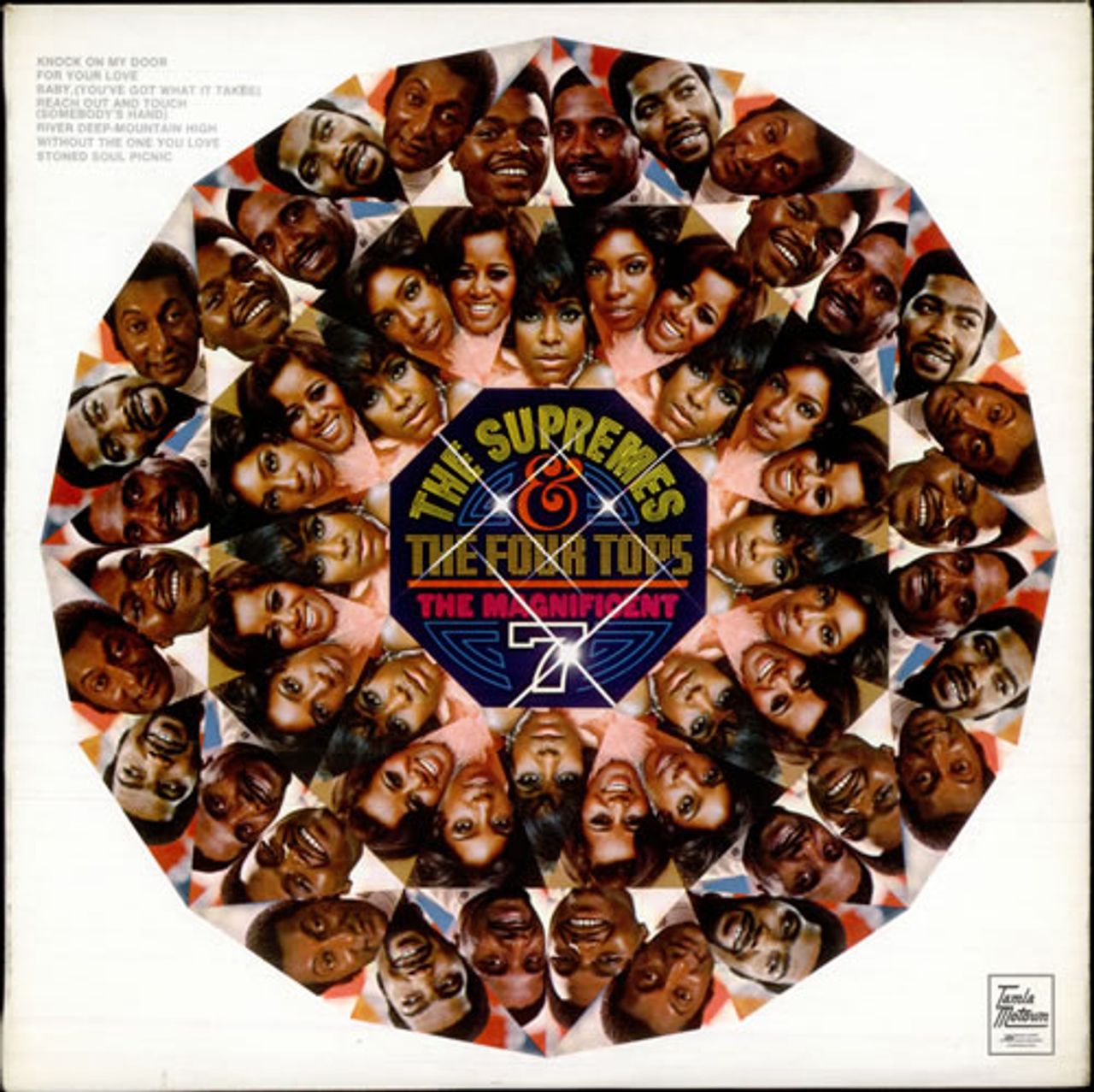 THE SUPREMES & THE FOUR TOPS Magnificent 7 (1970 UK 12-track stereo LP on Tamla Motown, a superb collaborative album between the two legendary soul groups, including renditions of River Deep Mountain High, Everyday People, Knock On My Door & For Your Love, front laminated flipback picture sleeve. The cover is Excellent with little wear, the vinyl is clean & in Excellent condition with a few minor signs of play STML11179)