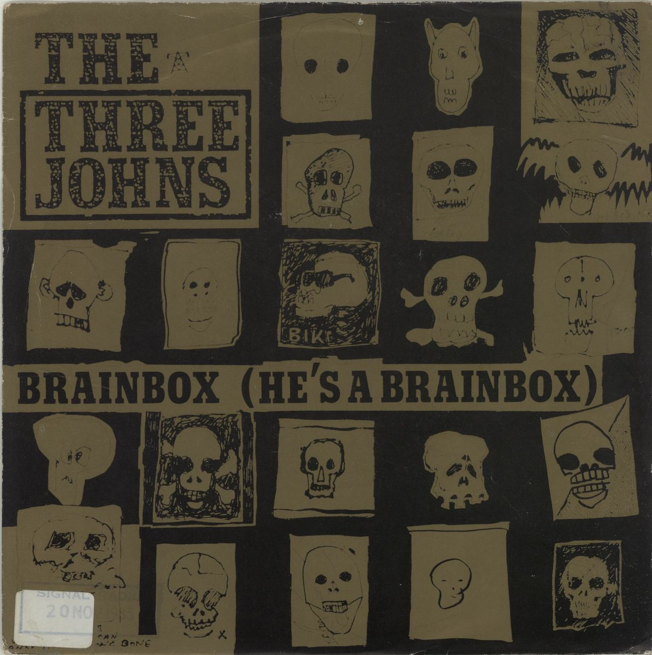 THE THREE JOHNS Brainbox [He's A Brainbox] (1985 UK solid centre 7" vinyl single, also including Watch It Go, housed in the gold & black paper picture sleeve with lyrics on reverse. There is some shelfwear to the edges of the sleeve with a smallsticker & date stamp to the front however, the vinyl remains in excellent condition ABS036)