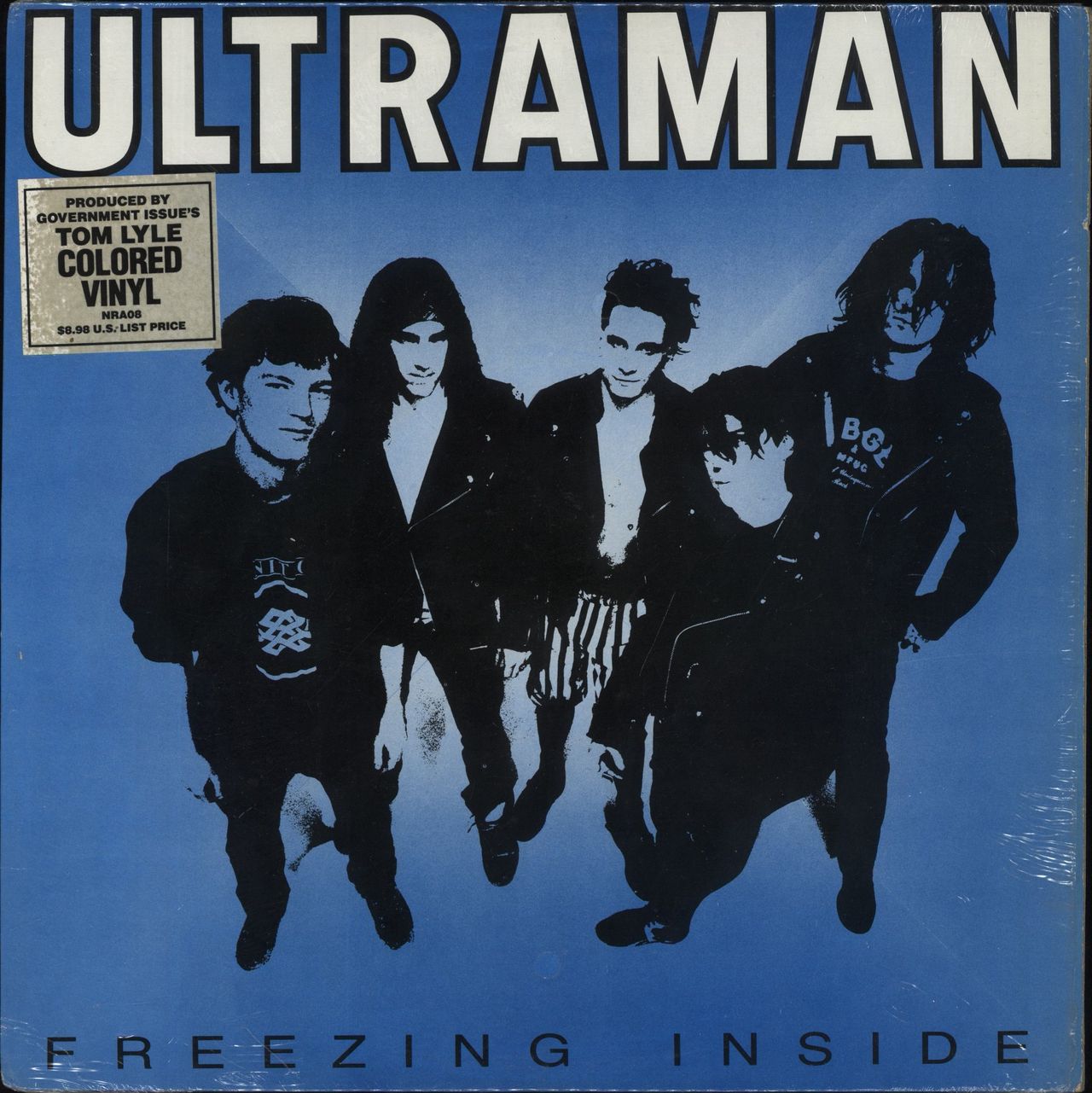ULTRAMAN Freezing Inside (1989 US 12-track LP, pressed on Blue Vinyl. Debut album from the punk rock band from St. Louis, Missouri. Picture sleeve with lyric inner. The sleeve remains in the open shrink with hype-sticker and displays just a little light wear along the opening edge and has a little creasing to the bottom left corner. The vinyl shows minimal signs of play NRA08)