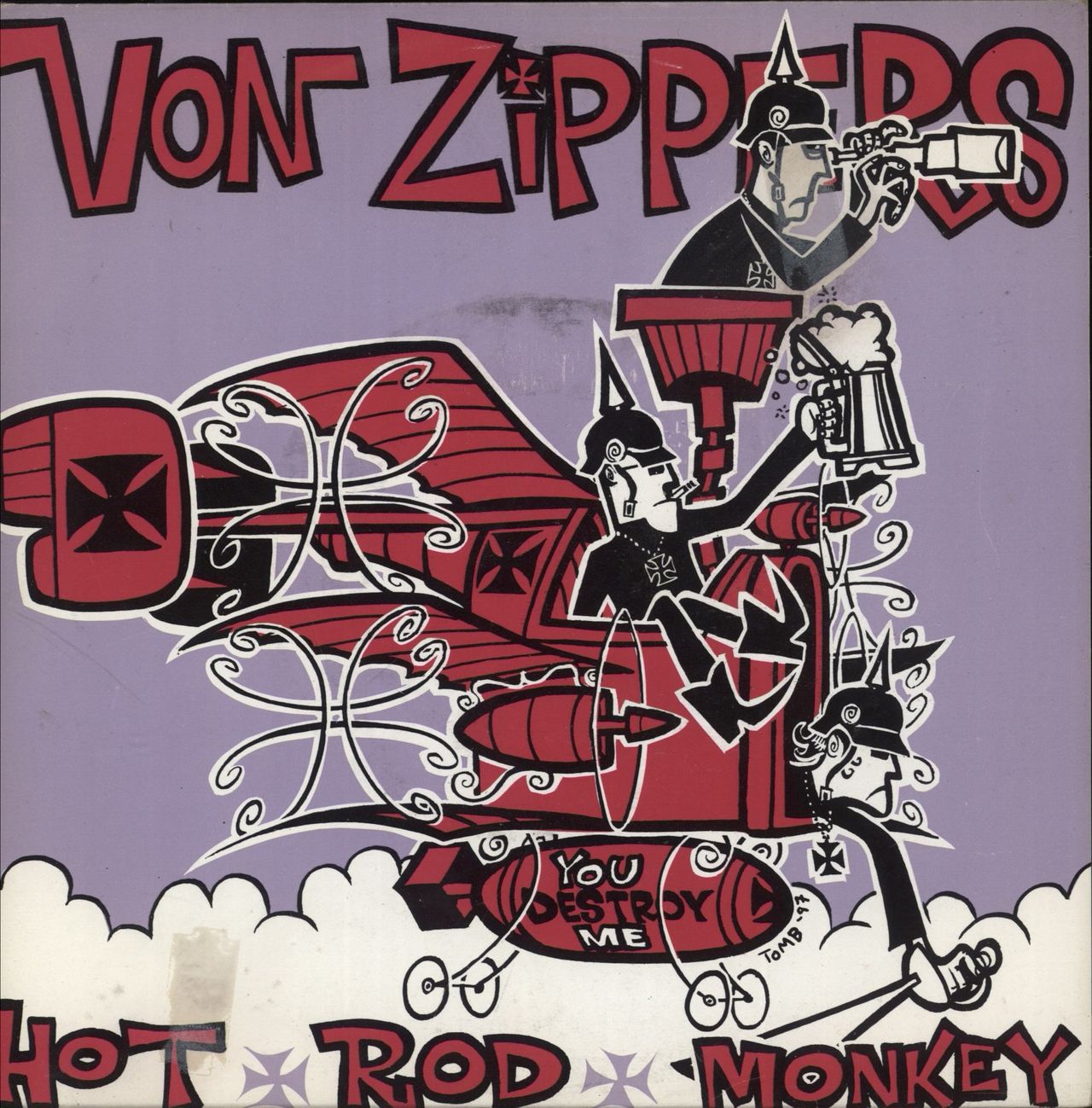 VON ZIPPERS Hot Rod Monkey (1997 German 2-track 7" vinyl single. Includes You Destroy Me. Picture sleeve. The sleeve has just a couple of sticker marks and a little ringwear. The vinyl is Excellent with the odd cosmetic mark SCAP047)