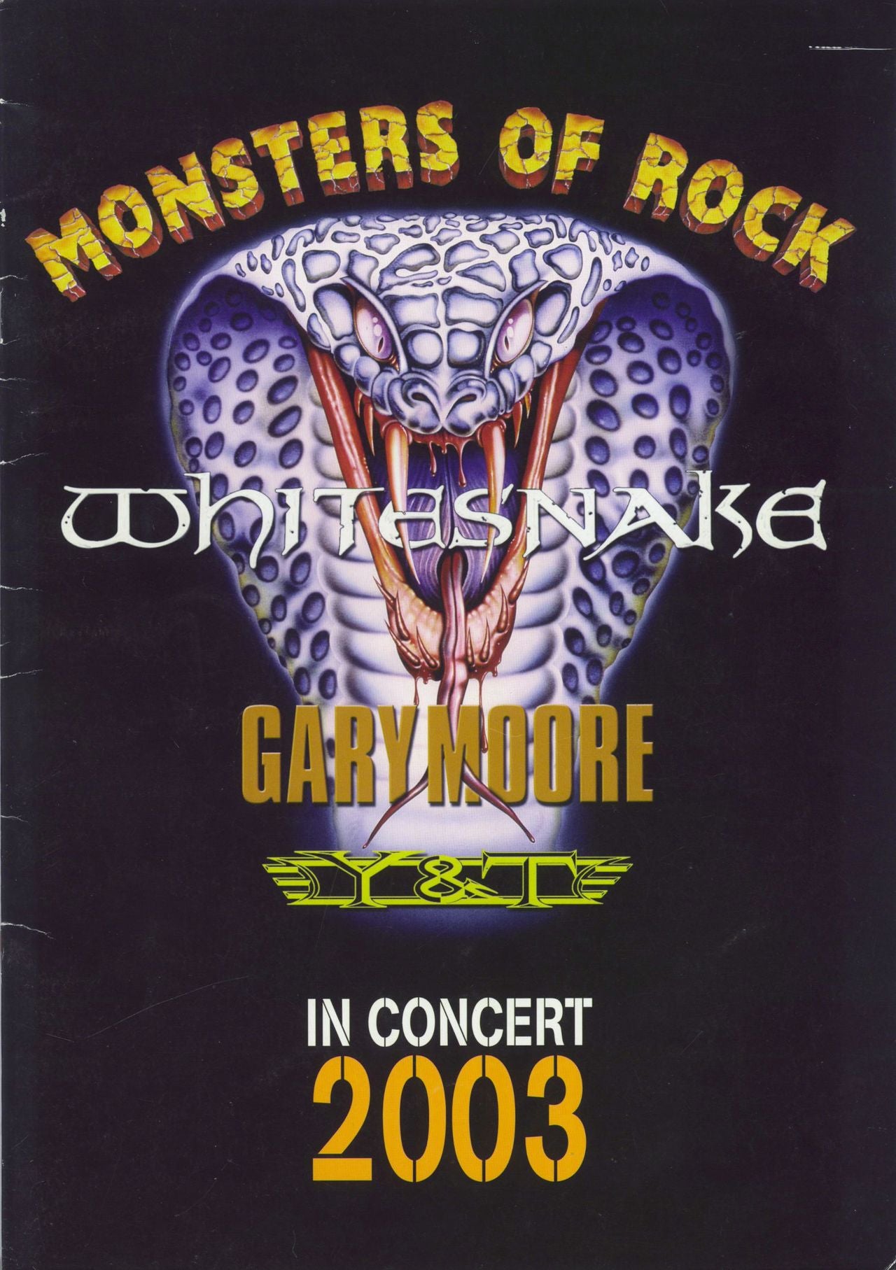 WHITESNAKE Monsters Of Rock - In Concert 2003 (Official 2003 UK 16 page tour programme for the shows also featuring Gary Moore and Y&T, with pages inside for each artist including photographs and text for each. The cover displays some light general wear otherwise remains excellent)