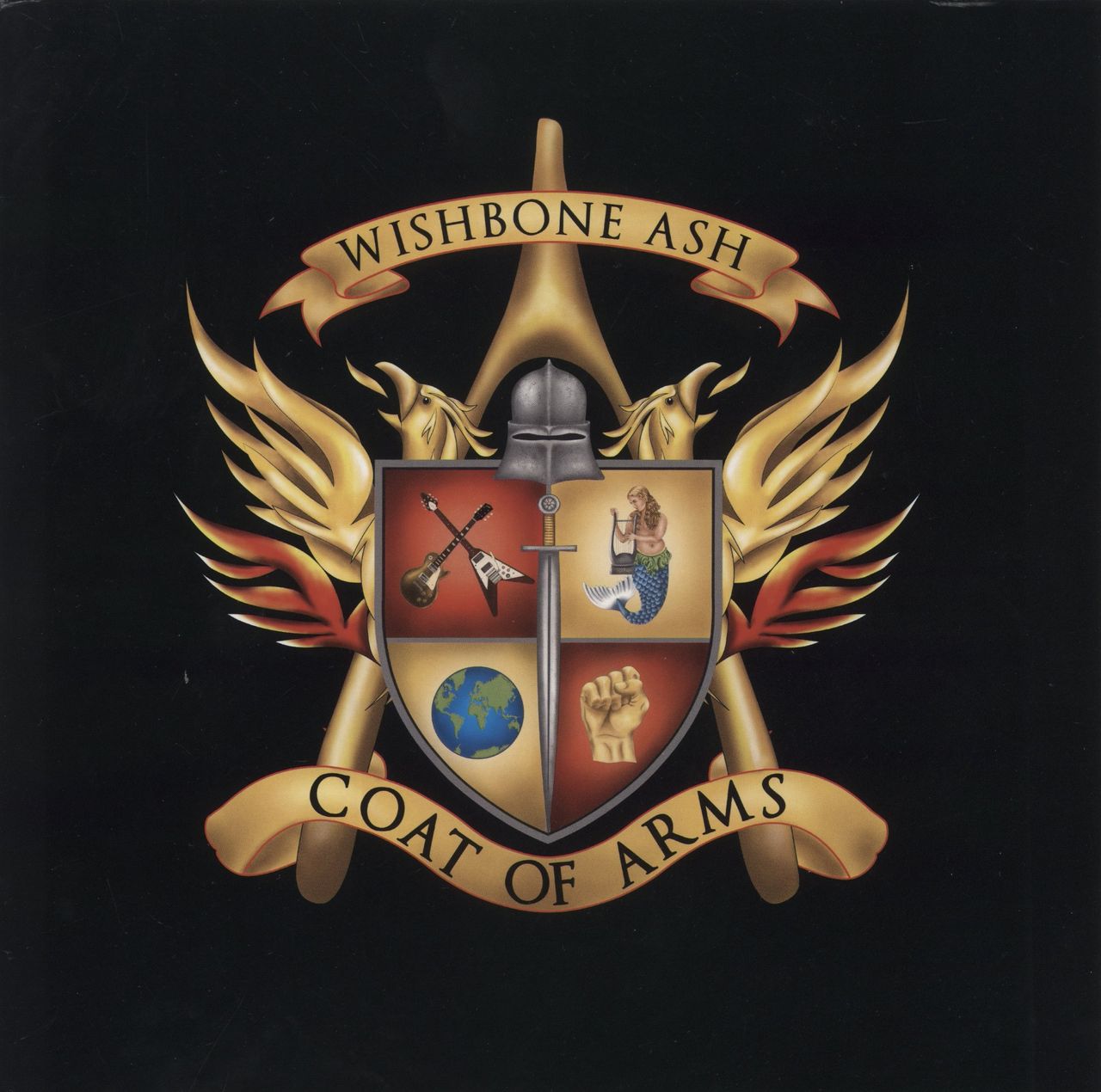 WISHBONE ASH Coat Of Arms (2020 UK/EU limited edition 12-track double album LP, the twenty-third studio album by the legendary British rock band which was also the final Wishbone Ash studio album to feature longtime drummer Joe Crabtree, including the singles We Stand As One plus the bonus recording Latitude. The gatefold picture sleeve shows a small top split due to vinyl shift and light wear/corner creasing but has the lyrics printed across the inside while the two vinyl discs look barely played)