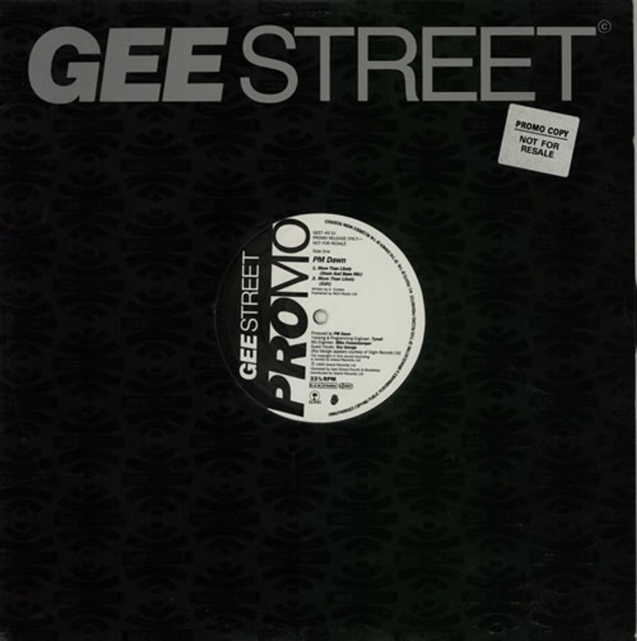 PM DAWN and BOY GEORGE More Than Likely (1993 German 5-track promotional-only vinyl 12", including the Drum And Bass & Edit remixes plus You Me The Vibe Electric, Fly Me To The Moon and Frostbite, issued in a promo-stickered Gee Street companydie-cut sleeve GEET49DJ)